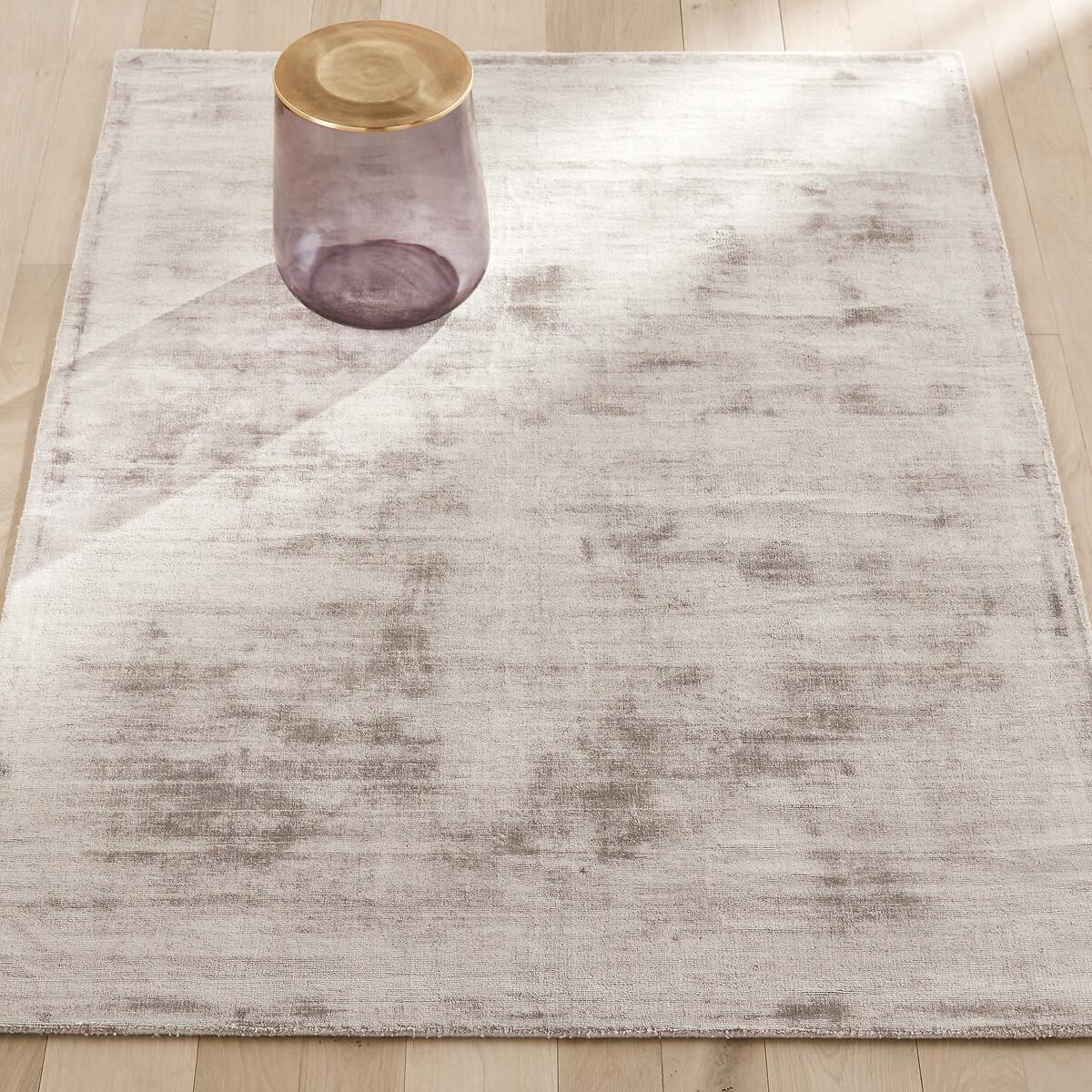 Der weiche Teppich Mustha verführt mit schimmernder Optik und Lichtreflexen. Er wird von indischen Webern auf traditionelle Weise handgefertigt.Beschreibung