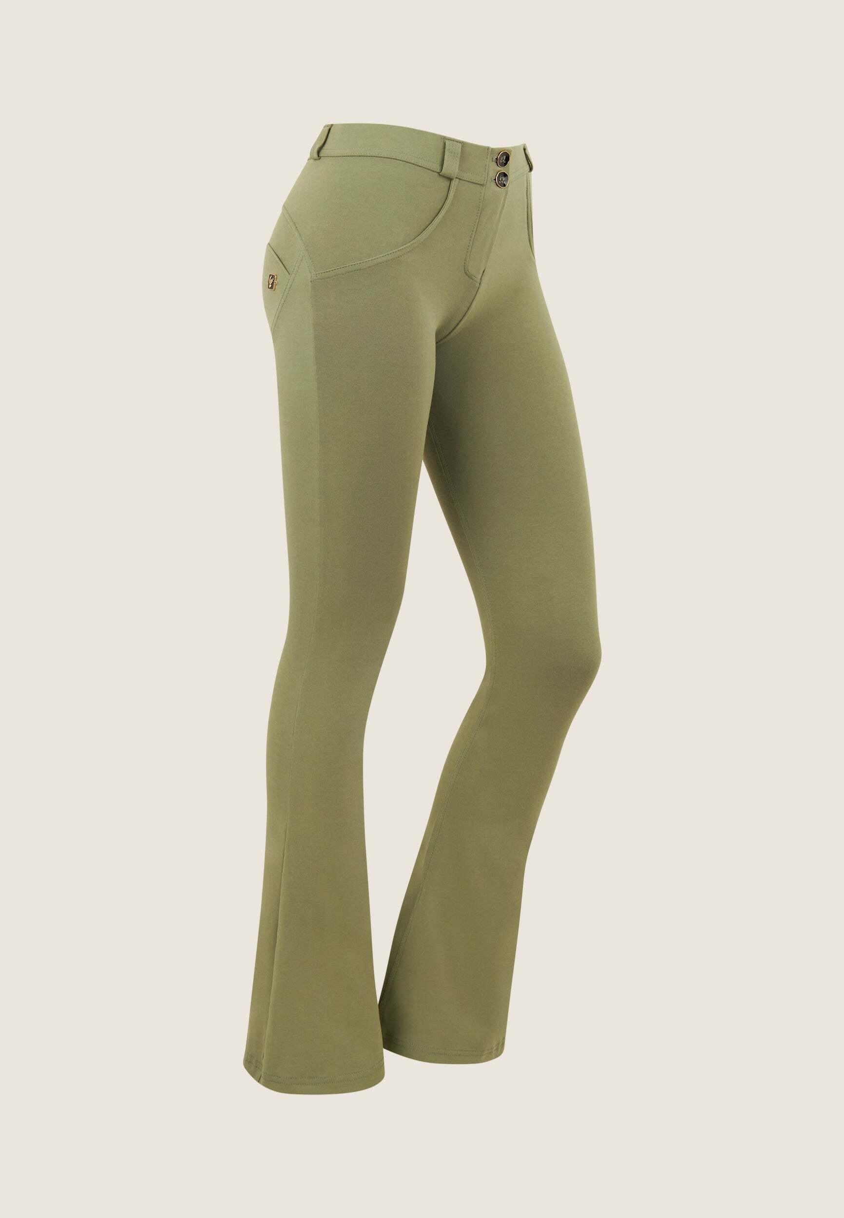 Diese Leggings bestehen aus bi-elastischem Jersey, einem weichen und bequemen Stoff, der Bewegungen leicht folgt. Das Material ist umweltfreundlich, da es aus Bio-Baumwolle und recyceltem Elastan gewonnen wird und frei von chemischen Stoffen und giftigen Farbstoffen ist. Sie stützen die Figur auf natürliche Weise dank der formenden Wirkung der von Freddy patentierten WR.UP®-Technologie, betonen Taille und Hüfte und bringen die Länge der Beine dank der zentralen Nähte zur Geltung.