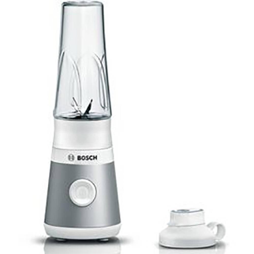 Kompakter & starker Mini-Standmixer mit bruch- und auslaufsicherer Tritan-ToGo-Flasche für unterwegs. Cremige, gesunde Smoothies dank Highspeed-Mixen. Exzellente Ergebnisse - Starker 450 Watt Motor mit bis zu 40.000 Motorumdrehungen/Minute. Geeignet für grüne Smoothies und Iced Smoothies - Tritan ToGo-Flasche mit 0,6 Liter Nutzvolumen und 3D Flow Booster-Linien - Hochwertige und rostfreie ProEdge Klingen aus Solingen, Made in Germany. Komfort / Reinigung - Intuitive Ein-Knopf-Bedienung - Einfache Reinigung durch spülmaschinenfeste Teile. Material/Design - Qualitativ hochwertiges ABS-Gehäuse in silber-metallic Optik - Tritan ToGo-Flasche: bruchsicher, leicht, geschmacks- und geruchsneutral - Alle Plastikteile, die mit Lebensmitteln in Berührung kommen, sind BPA frei Enthaltenes Zubehör - Direkt Mixen in der ToGo-Flasche: kein Umfüllen. Liegt gut in der Hand. Auslaufsicherer Deckel.