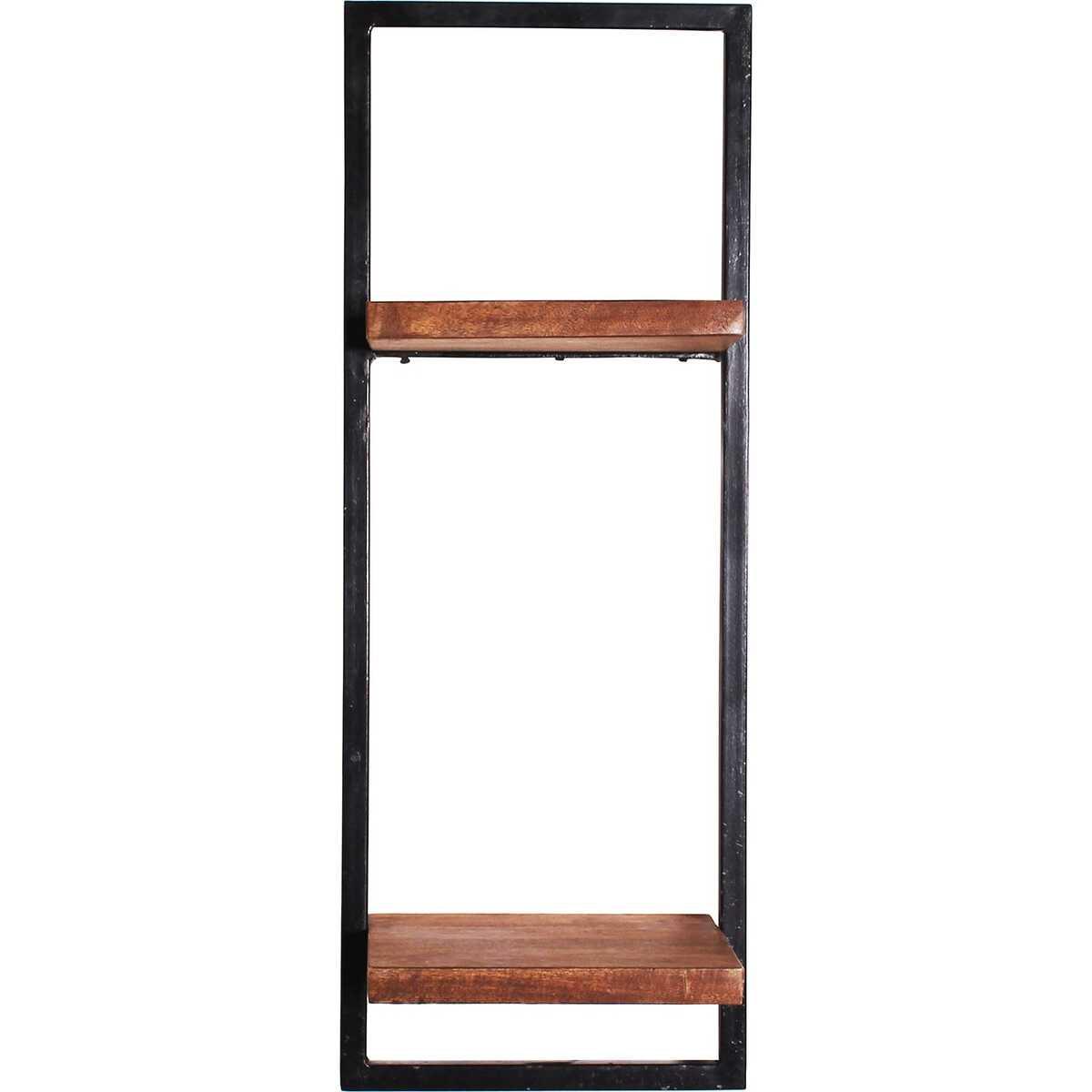 Wandregal aus Mangoholz mit Altmetall und mit 2 Böden, natur mit antikschwarz, 25x25x75
