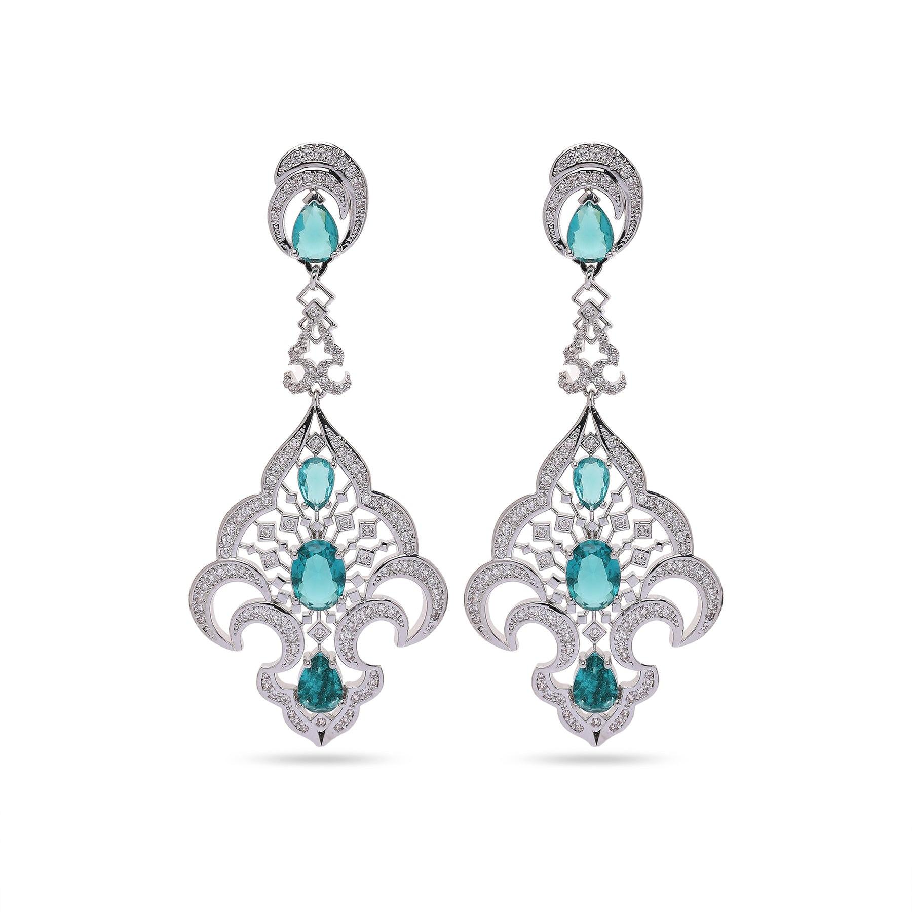Diese exquisiten grünen Statement-Ohrringe bestechen durch ihr aufwendiges, vom Vintage-Stil inspiriertes Design. Funkelnde smaragdgrüne Edelsteine heben sich elegant von einem glitzernden Silberrahmen ab. Die filigranen Details unterstreichen ihren königlichen Charme und machen sie zur perfekten Wahl für festliche Anlässe oder um jedem Outfit einen Hauch von Luxus zu verleihen. Größe: 2,9 cm x 6,7 cm | Beschichtung: Rhodiumplattiert | Verschluss: Stecker und Rückseite