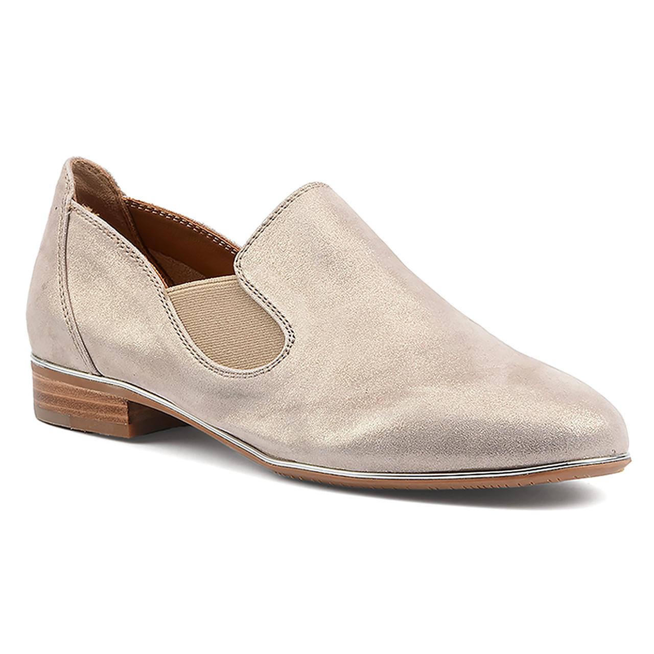 Die Alisia Loafers sind klassische Schuhe, die für formelle Anlässe entworfen wurden. Hergestellt aus Nubukleder, verfügen sie über ein elegantes Obermaterial mit Pailletten, die einen Hauch von Raffinesse hinzufügen. Das Leder- und Textilfutter sorgt für optimalen Komfort und bietet gleichzeitig einen Hauch von Stil. Die Ledersohlen und Gummiaußensohlen garantieren einen festen Halt und ein Gefühl von Komfort. Die Fersen messen 15 mm und bieten einen leichten Anstieg ohne Kompromisse bei der Stabilität. Design-Details, wie sichtbare Nähte und ein elastisches Band für einfaches An- und Ausziehen, fügen einen Hauch von Verfeinerung hinzu. Die Alisia Loafers sind in Silber erhältlich, eine schicke und elegante Farbe, die perfekt für formelle Anlässe ist.