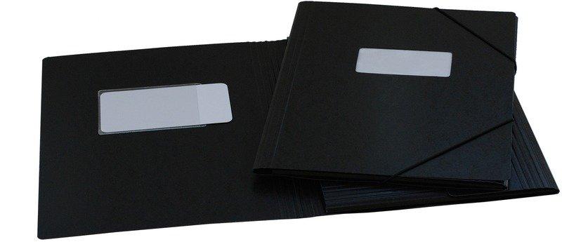 PRESSSPAN A4 - Zirkulationsmappe Die EROLA-Zirkulationsmappe aus echtem Schweizer Pressspan - dauerhaft und elegant. Mit einem auswechselbarem Schild, 3 Klappen und Elastikverschluss hält sie Dokumente bis zu einer Füllhöhe von 45mm. Presspan-Deckel 0,65 mm mit Elastik-Verschluss mit ausgestanztem Etikettenfenster und auswechselbarem Schild Fassungsvermögen ca. 40 mm mit Fenster 3 Klappen