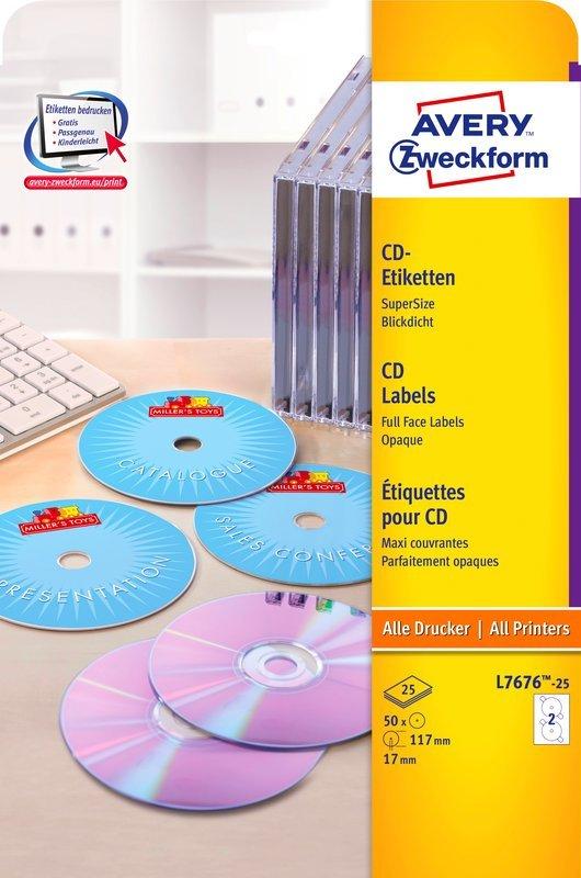 Avery-Zweckform, AVERY ZWECKFORM CD-Etiketten SuperSize 117mm, permanent 25x2 Stk.