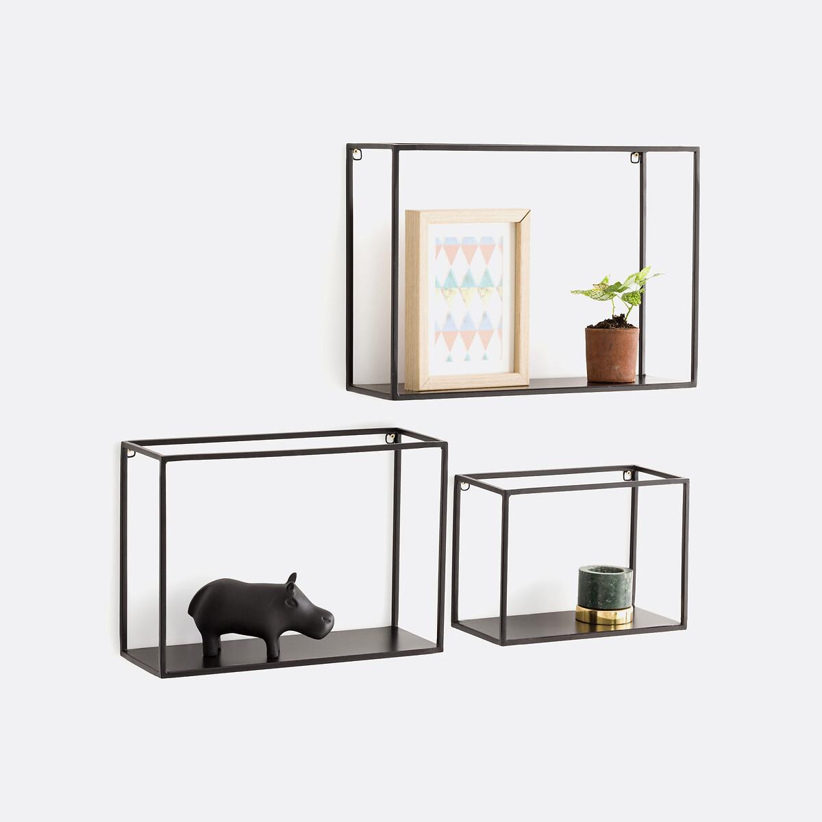 3er-Set Wandregale Hiba aus Metall. Diese Regale mit ihrem leichten, unaufdringlichen Design sind vom Industrial Style inspiriert.