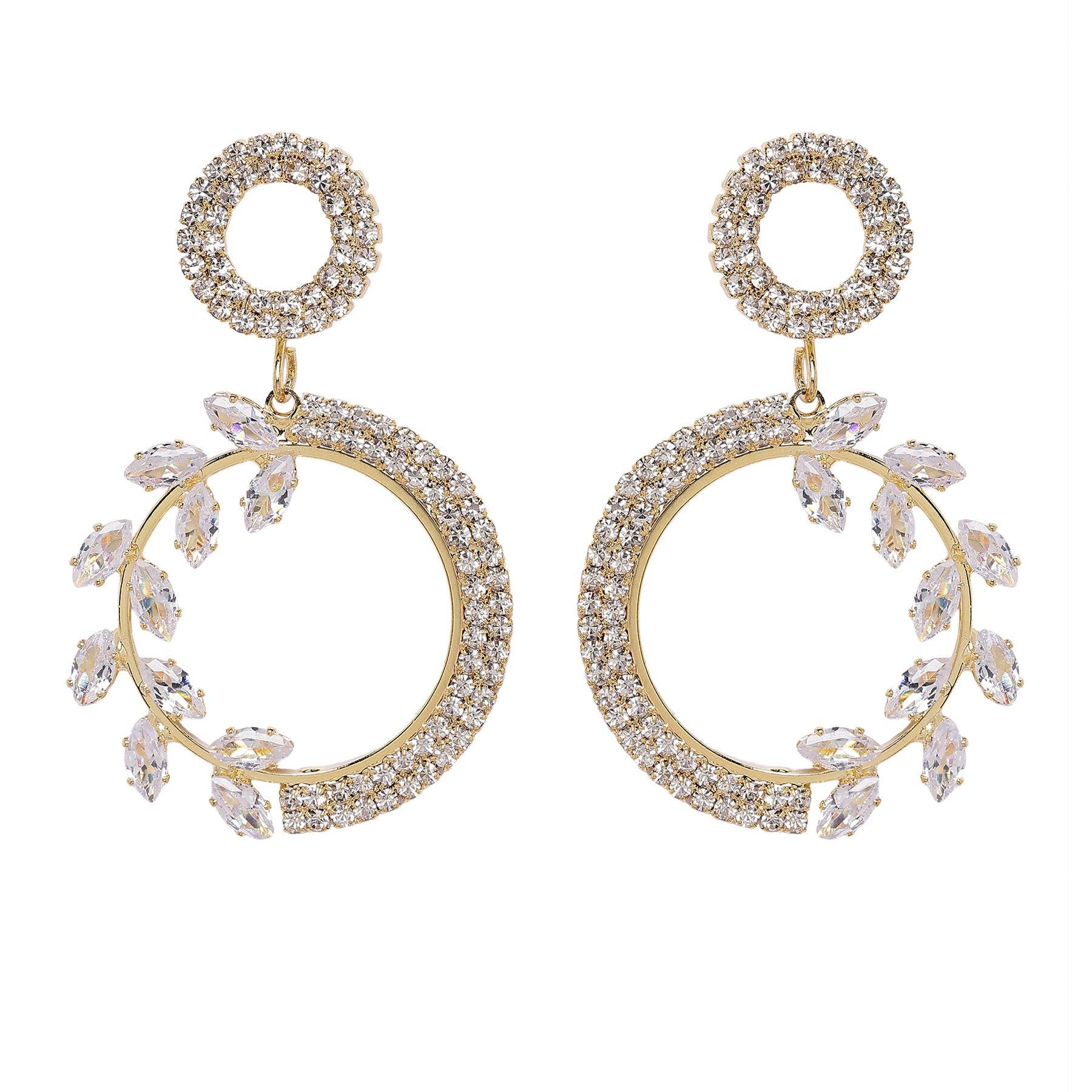 Das einzigartige Doppelkreis-Design, besetzt mit einer schimmernden Kaskade funkelnder Steine, verleiht diesen Ohrringen einen bezaubernden und eleganten Look. Sie sind ein echtes Statement-Piece, das Raffinesse und Charme ausstrahlt und jedem Outfit einen Hauch von Glamour verleiht. Größe: 3,1 cm x 4,8 cm | Beschichtung: Vergoldet | Verschluss: Stecker und Rückseite