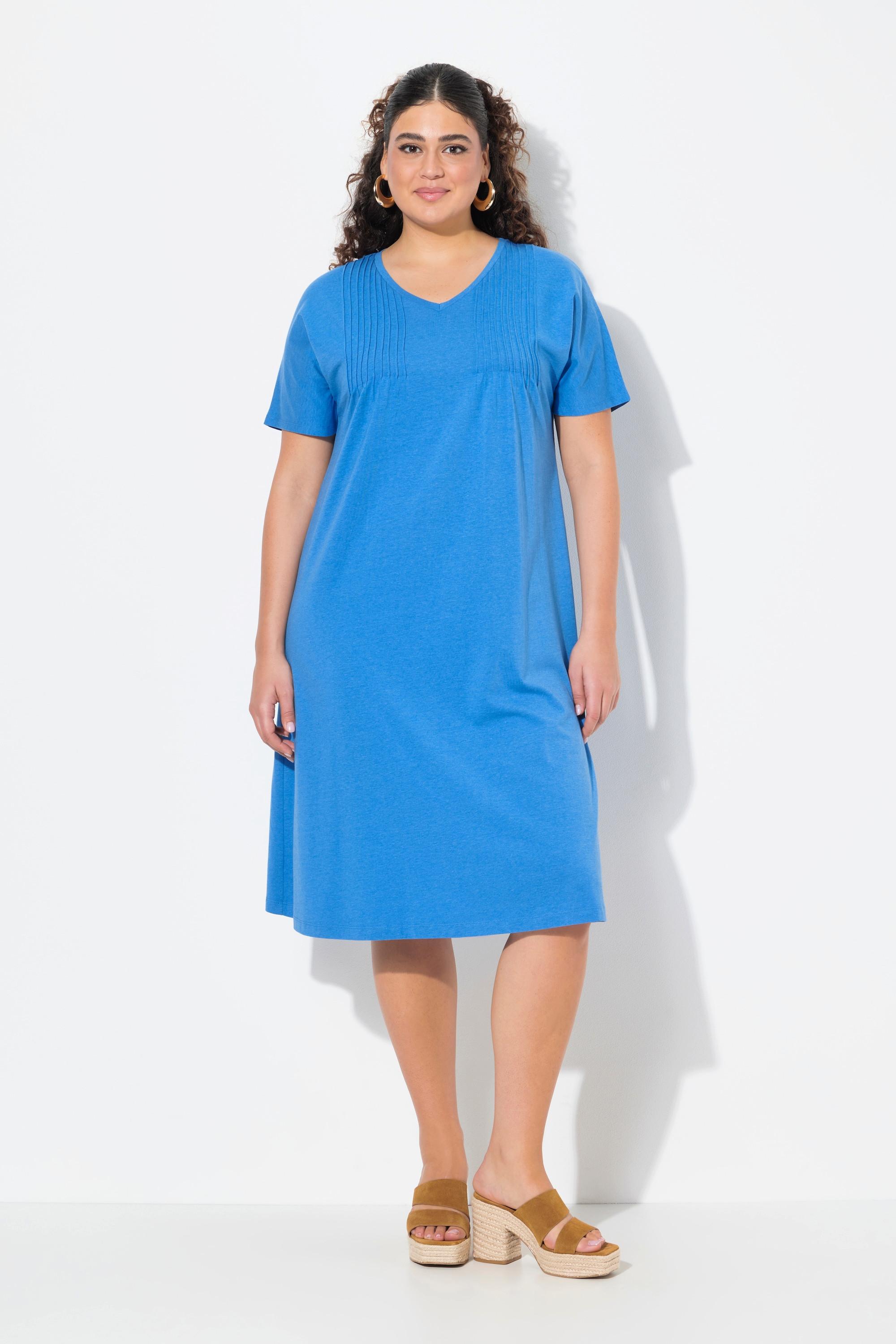 Ulla Popken Jerseykleid Biesen A-Linie V-Ausschnitt Halbarm
