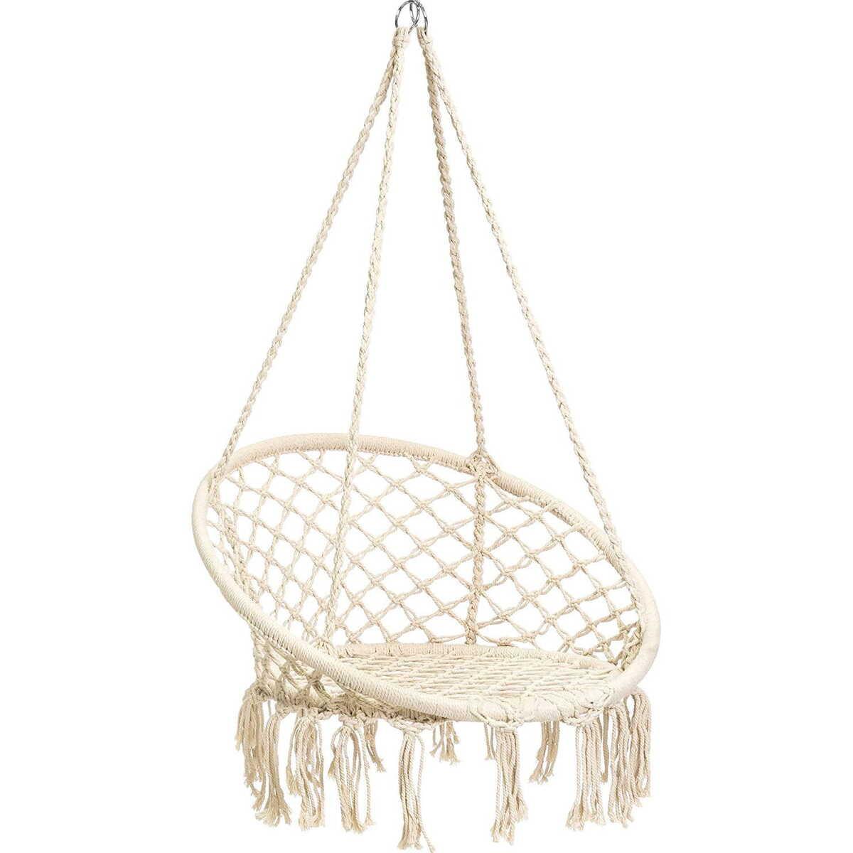 Der Hängesessel Barbuda, ein harmonisches Zusammenspiel von Komfort und Stil, verspricht die ultimative Entspannungsoase zu sein. Mit seinem robusten Stahlrahmen und dem bequemen Sitz aus Baumwolle und weissem Polyester, ist er ein Ausdruck von Eleganz und Gemütlichkeit. Ideal für Garten, Terrasse oder Innenbereich, er schafft eine Atmosphäre zum Entspannen und Geniessen. Sein zeitloses Design in Weiss bringt eine helle und luftige Stimmung in jeden Raum. Er kommt mit passenden Kissen für zusätzlichen Komfort und Stütze, und mit seinem stabilen Aufbau und mitgeliefertem Zubehör, ist der Barbuda Hängesessel Ihre perfekte Wahl für unbeschwerte Momente der Ruhe und Entspannung.
