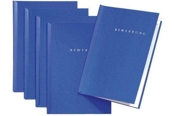 START - Bewerbungsset Bewerbungsset Start, für Dokumente im Format A4, Basic, blau, aus hochwertigem Karton, bestehend aus 5 stabilen Klemmschienen, 5 Vorder- und Rückendeckeln, mit silbernem Schriftzug ?Bewerbung? auf dem Vorderdeckel 5 Klemmschienen und 5 Vorder- und Rückendeckel hochwertiges Material