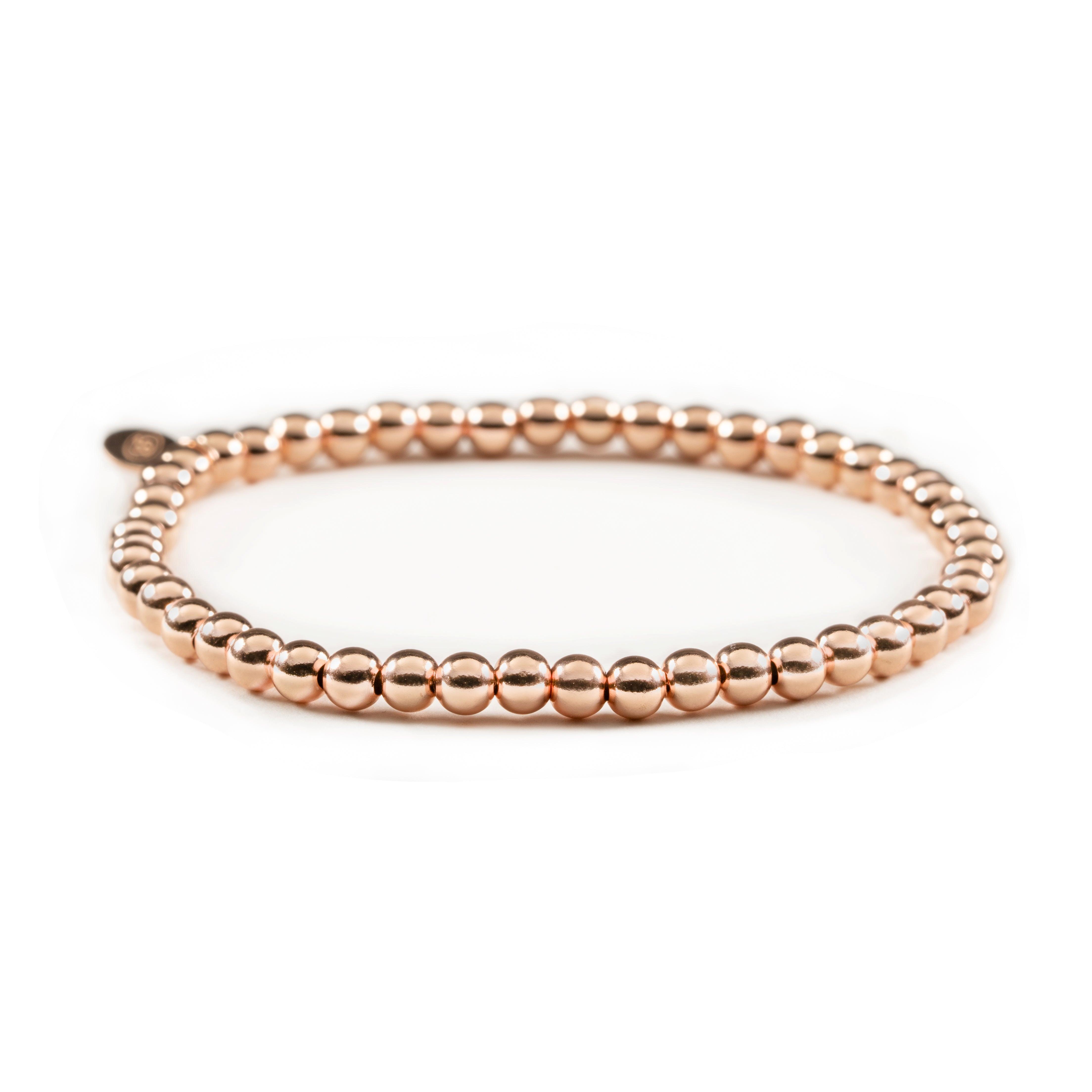 Dieses feine Armband mit 4mm Silberperlen, edel rosé vergoldet, verleiht deinem Look eine sanfte, feminine Ausstrahlung. Die warm glänzende Farbe schmiegt sich geschmeidig ans Handgelenk und lässt sich wunderbar mit weiteren Schmuckstücken kombinieren.