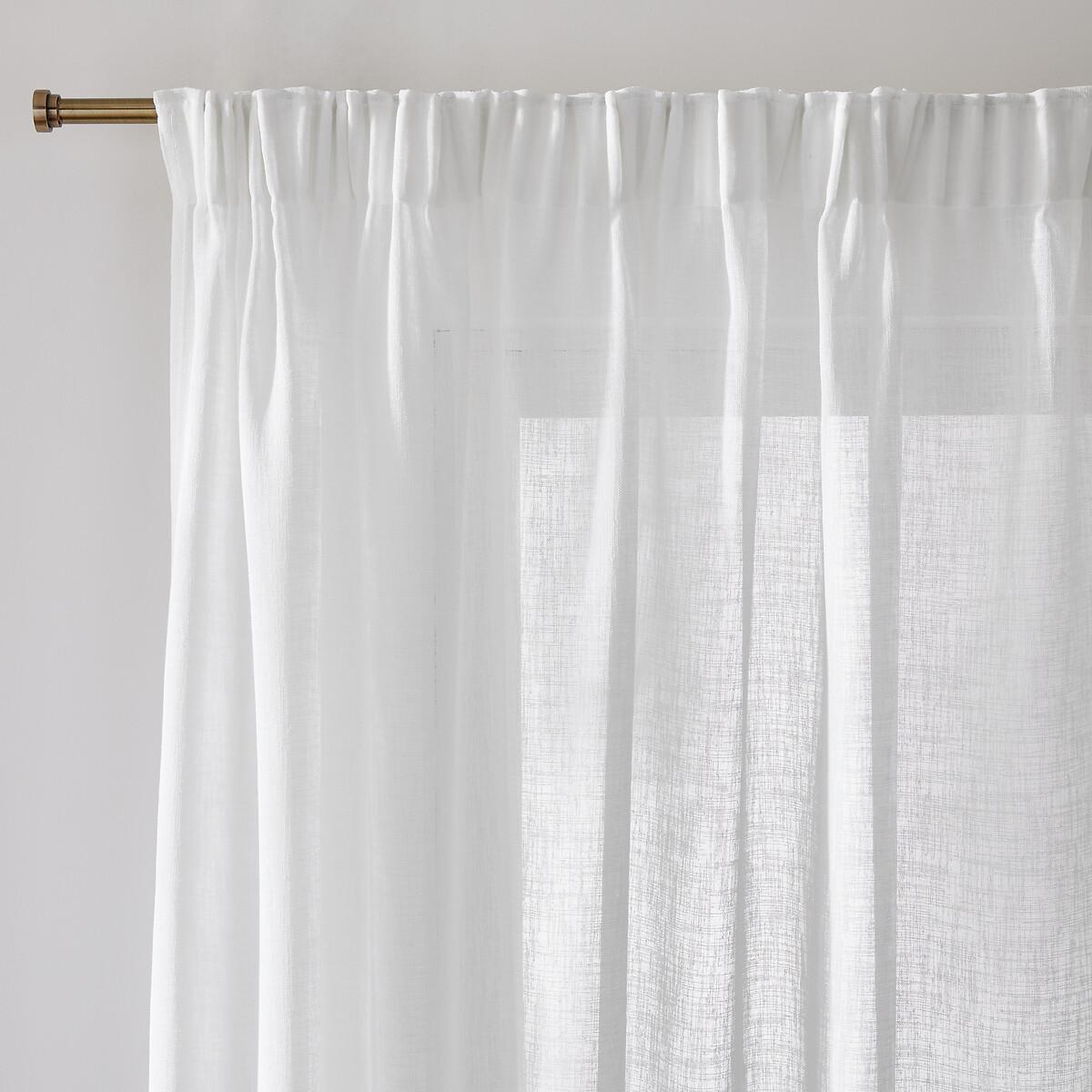 Das luftig-leichte Polyestergewebe dämpft das Tageslicht. Das pflegeleichte Material ist knitterfrei Bügeln ist also überflüssig. Das Faltenband bildet je nach gewünschter Platzierung des Vorhangs unterschiedlich grosse Falten. Ausserdem können die Haken in verschiedenen Höhen angebracht werden, sodass die Vorhangstange verdeckt wird oder sichtbar bleibt.