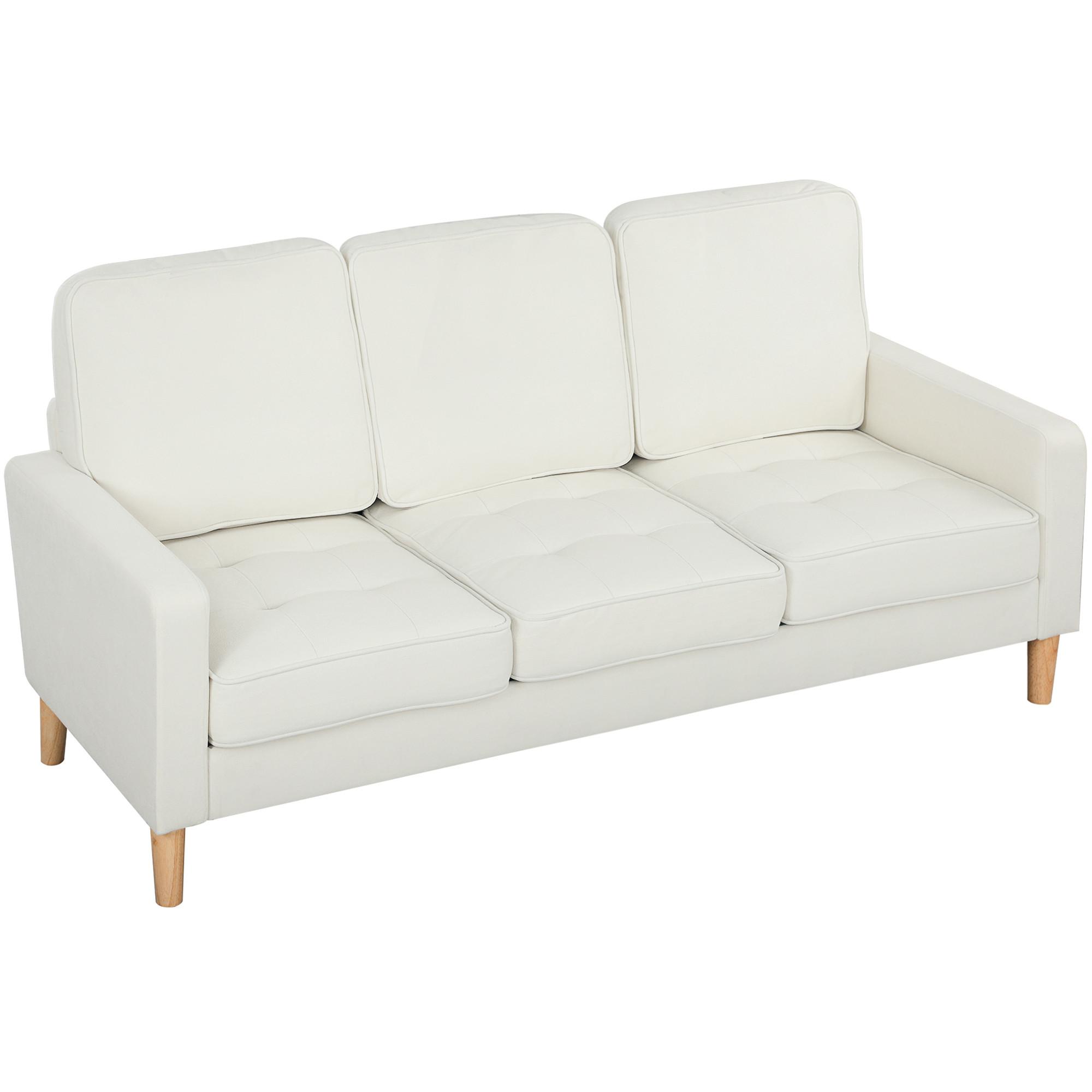 Erleben Sie das luxuriöse Gefühl des HOMCOM 3-Sitzer-Sofas, dessen 12 cm dicke Sitzpolster und 17 cm dicke Rückenlehne höchsten Komfort bieten. Die Beine aus Naturholz verleihen ihm eine moderne, elegante Note, ideal für minimalistische Räume. Das robuste Kautschukholzgestell hält bis zu 360 kg und bietet somit dauerhafte Stabilität für verschiedene Gelegenheiten.