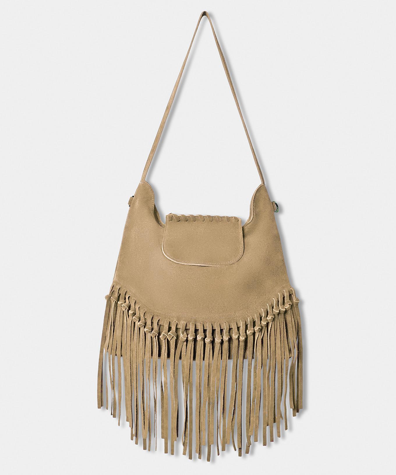 Diese Veloursledertasche mit Quasten unterstreicht einen individuellen Stil und eignet sich für vielseitige Kombinationen.