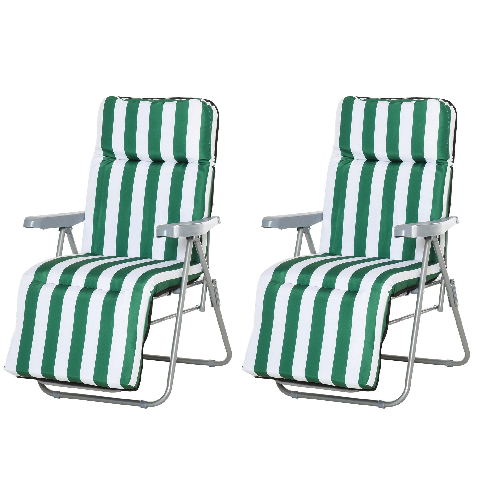 Northio, 2 X Klappstühle Gartenstuhl Sonnenliege Armlehne Klappbar 5 Positionen Auflage Grün+Weiß 60 X 75 X 102 Cm