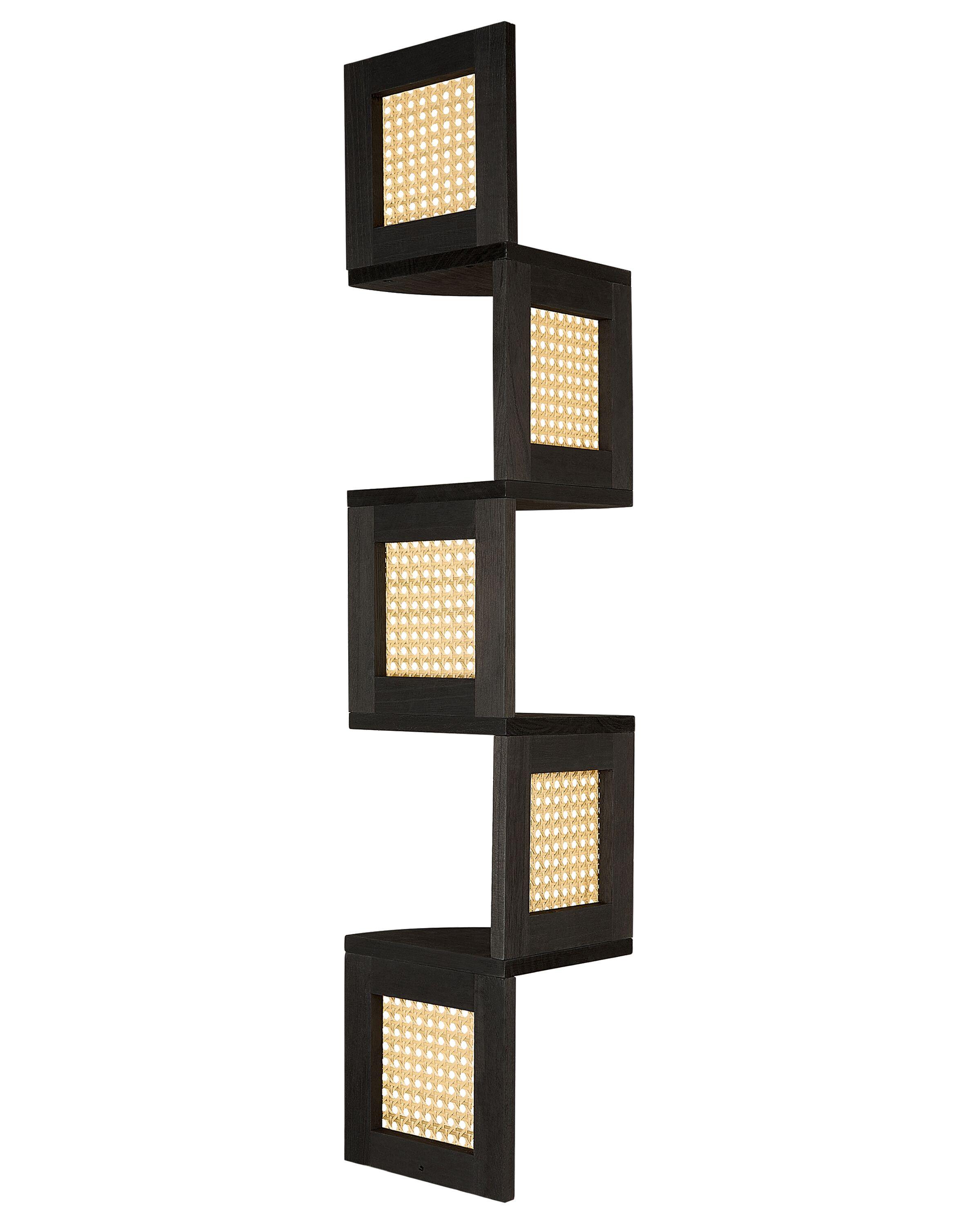 Eck-Wandbücherregal. Dieses vielseitige Eckregal eignet sich nicht nur für das Kinderzimmer, sondern auch für andere Wohnbereiche. Die naturbelassene Holzoberfläche und das Wiener Geflecht schaffen eine gemütliche, böhmische Atmosphäre und sind ideal, um kleine Spielsachen, Pflanzen oder Dekorationsartikel auszustellen. Sein einzigartiges Design passt in jede Ecke und macht ihn zu einer modischen und funktionellen Ergänzung deiner Einrichtung.
