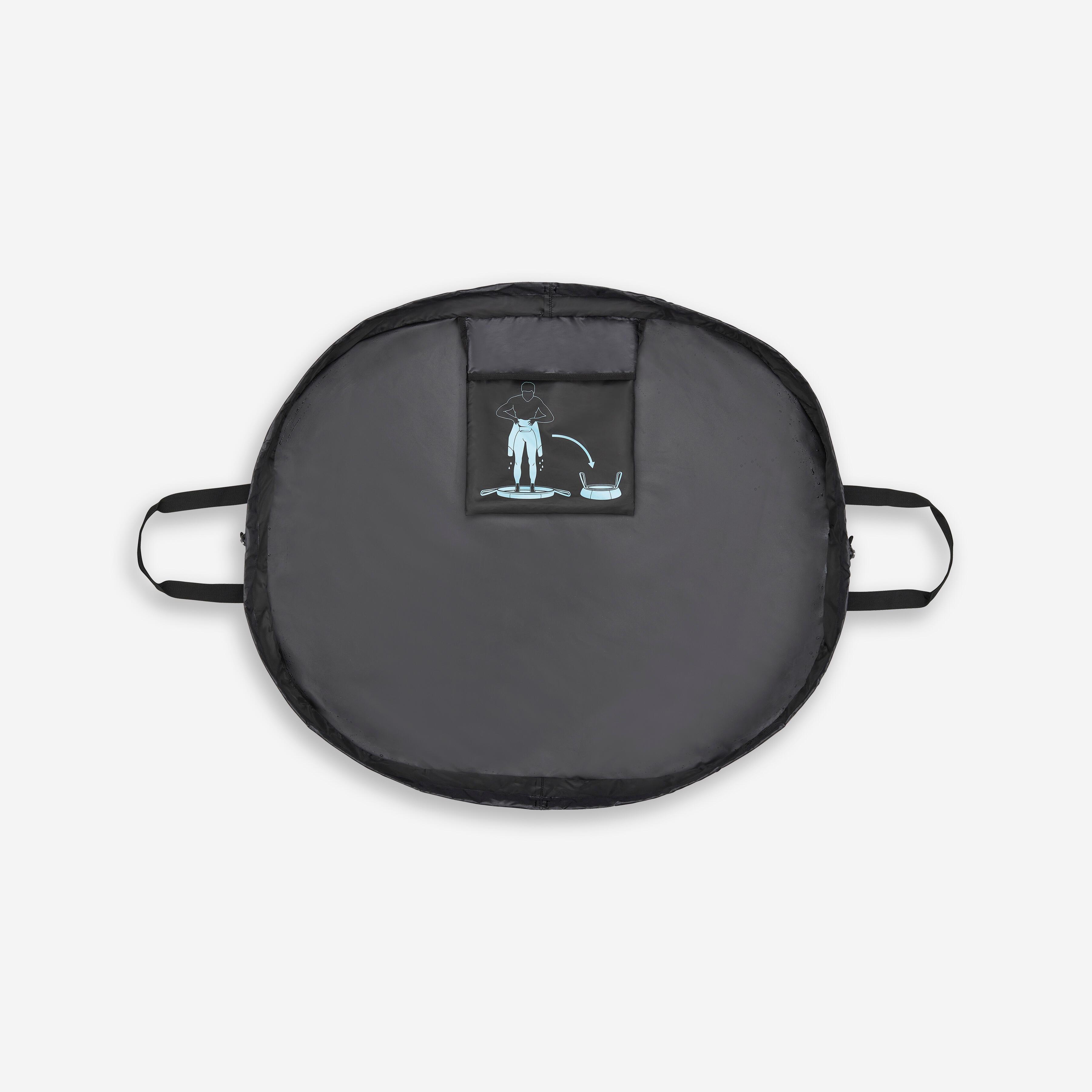 Clevere, wasserdichte Tasche, um sich nach einer Surfsession umzuziehen und dabei die Füße zu schützen. Sie verhindert, dass der Neoprenanzug bei Bodenkontakt schmutzig wird.