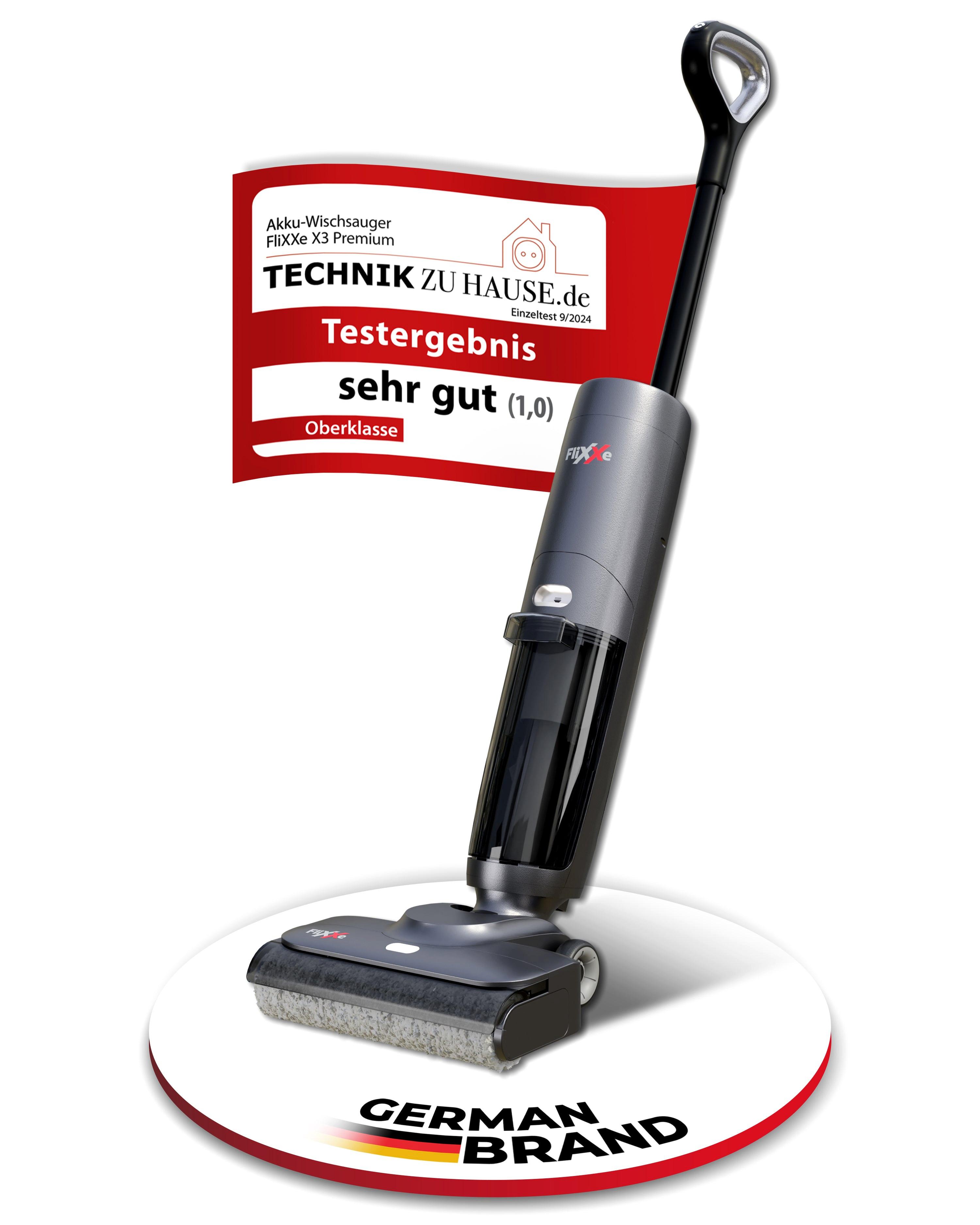 Flixxe X3 Premium 2-in-1 Nass-Trockensauger Kabelloser Sauger und Wischer, 200W Leistung, 30-40 Min Laufzeit, LED-Display, Selbstreinigungsfunktion, X-Sense Technologie, Zwei-Tank-System, Tierhaar-Entfernung, Hygienische Reinigung für alle Böden, Beidseitige KantenreinigungLeistungsstarker 200W Motor & 2-in-1 Saugen & Wischen: Der kabellose Flixxe X3 Premium Nass-Trockensauger mit 200W Saugleistung reinigt mühelos nasse und trockene Verschmutzungen, auch klebrigen Schmutz, auf Hartböden. Kombiniert Saugen und Wischen, um bis zu 50 % Zeit zu sparen und Ihre Böden hygienisch sauber zu halten.X-Sense Technologie Automatische Anpassung: Die X-Sense-Technologie passt Saugkraft, Wassermenge und Bürstenwalzengeschwindigkeit automatisch an den Verschmutzungsgrad an, um stets optimale Reinigungsergebnisse zu erzielen.Exklusive Bürstenwalze & präzise Kantenreinigung: Die Bürstenwalze gleitet mühelos entlang von Sockelleisten und erreicht schwer zugängliche Ecken, während die beidseitige Kantenreinigung für makellose Böden bis in die letzte Ecke sorgt.Zwei-Tank-System & Selbstreinigungsfunktion: Das Zwei-Tank-System trennt sauberes und schmutziges Wasser, sodass Sie immer mit frischem Wasser und Reinigungsmittel arbeiten. Die Selbstreinigung reinigt automatisch die Bürstenwalze und Schläuche, während die Zentrifugaltrocknung überschüssiges Wasser entfernt.Für alle Böden & Tierhaarentfernung geeignet: Der Flixxe X3 Premium ist ideal für Holzböden, Fliesen, Naturstein und elastische Böden und entfernt mühelos Tierhaare. Die Dockingstation sorgt für einfache Wartung und komfortables Aufladen.Lotion 1 Liter Lemon Art. 309894, Lotion 1 Liter Lavender Art. 309895Video