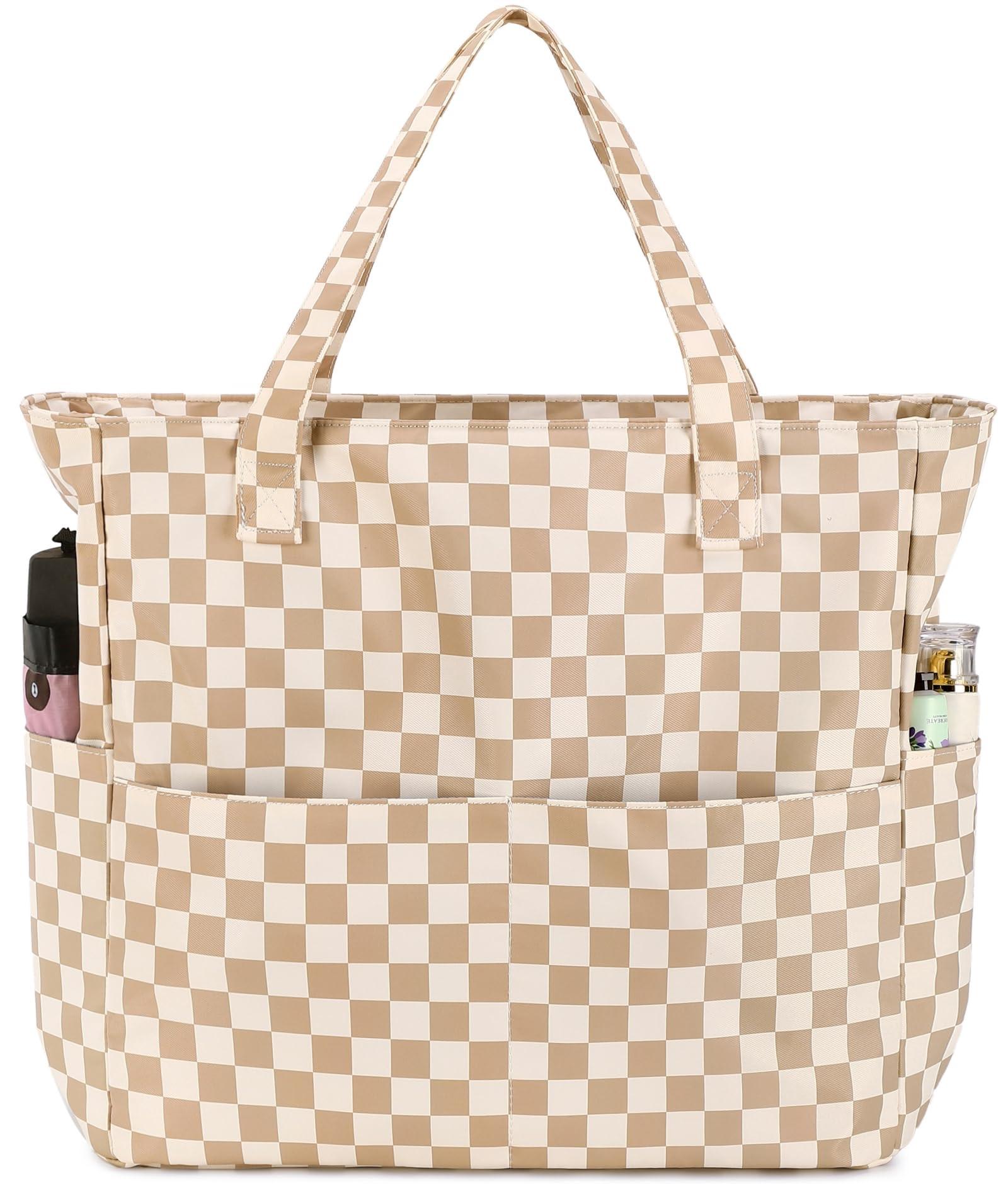 Only-bags.store Große karierte Strandtasche mit Reißverschluss