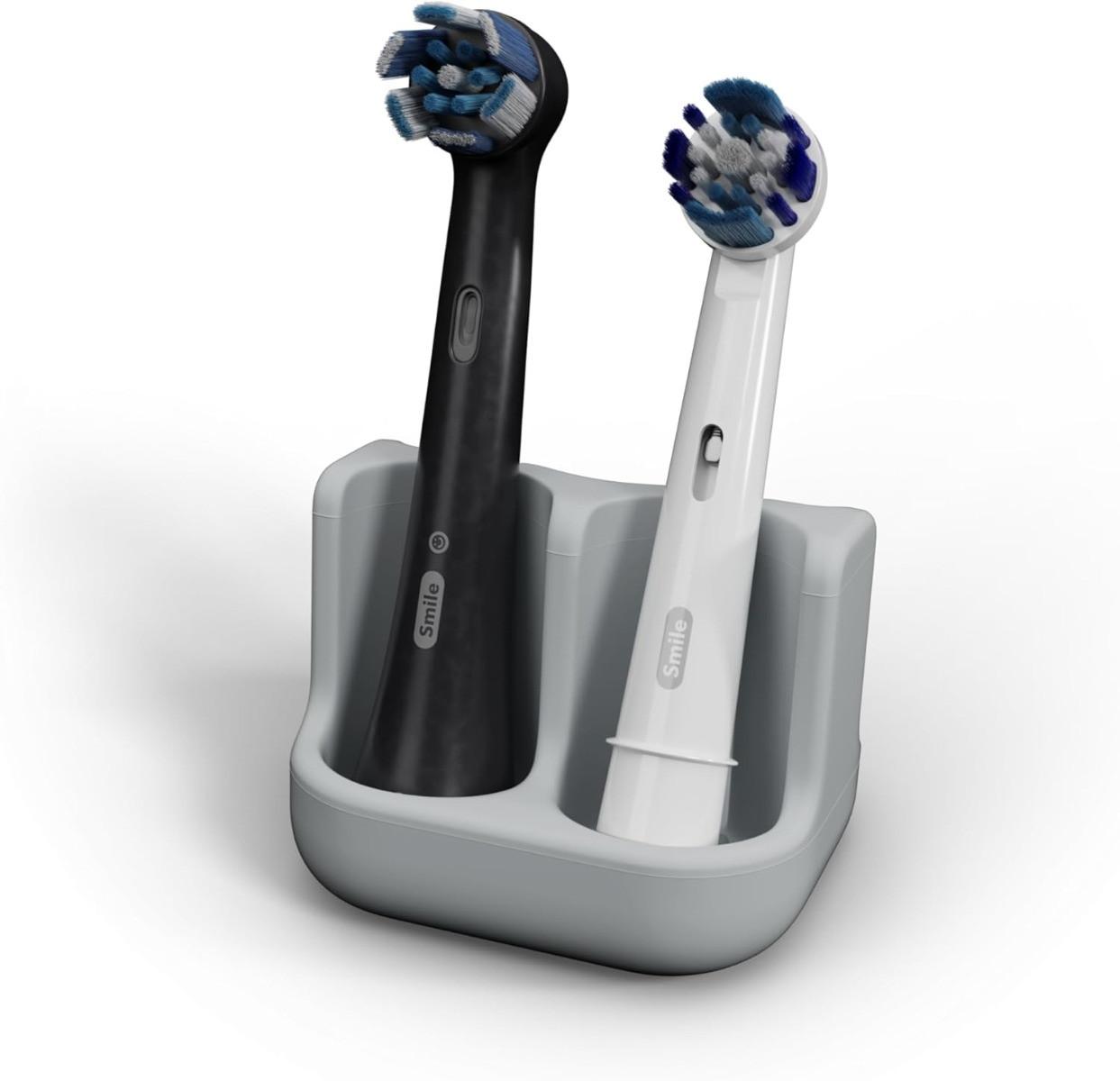 Mit dem Qikfresh Aufsteckbürstenhalter für 2 Aufsteckbürsten sorgst du zuverlässig für mehr Ordnung und Hygiene in deinem Badezimmer. Sein modernes, minimalistisches Design in Grau, Weiss oder Schwarz fügt sich harmonisch in jede Badezimmereinrichtung ein und hält Zahnbürstenköpfe sicher, hygienisch und griffbereit. Dank des intelligenten Abfluss-Systems mit integrierter Auffangschale bleiben die Bürsten trocken und sauber – für maximale Hygiene im Alltag. Der Halter steht frei, ohne dass Bohren oder Kleben notwendig ist, und bietet Platz für bis zu zwei elektrische Zahnbürstenköpfe. Universell kompatibel passt er zu allen gängigen Aufsteckbürsten von Marken wie Braun Oral-B, iO, Philips Sonicare und mehr. Hergestellt aus 100 % lebensmittelechtem Platin-Silikon mit einer geschmeidigen, matten Soft-Touch-Oberfläche ist er nicht nur langlebig und reissfest, sondern auch spülmaschinenfest und sterilisierbar. Mit kompakten Massen von 55 × 48 × 41 mm passt der Aufsteckbürstenhalter perfekt auf kleine Ablagen oder ins Reisegepäck. Der Lieferumfang umfasst einen Aufsteckbürstenhalter für zwei Bürstenköpfe.
