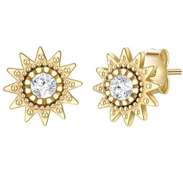 Du magst die Symbolkraft der Sonne als Spenderin von Licht, Wärme und Leben? Dann werden dir diese glamourösen Ohrstecker des Labels Glanzstücke München gefallen: Inspiriert von Jugendstil- und Vintage-Schmuck schmückt ein stilisiertes Sonnensymbol dein Ohrläppchen, mit aufwändig ziselierter Oberfläche und verziert mit einem Zirkonia-Kristall. Der Ohrschmuck ist aus hochwertigem 925er Sterlingsilber gefertigt und mit klassischem Gelbgold veredelt - kombiniert mit dem Gefunkel des Zirkoniakristalls ein echter Hingucker für Fans von besonderen Accessoires. Ein praktischer Steckverschluss sorgt für hohen Tragekomfort.