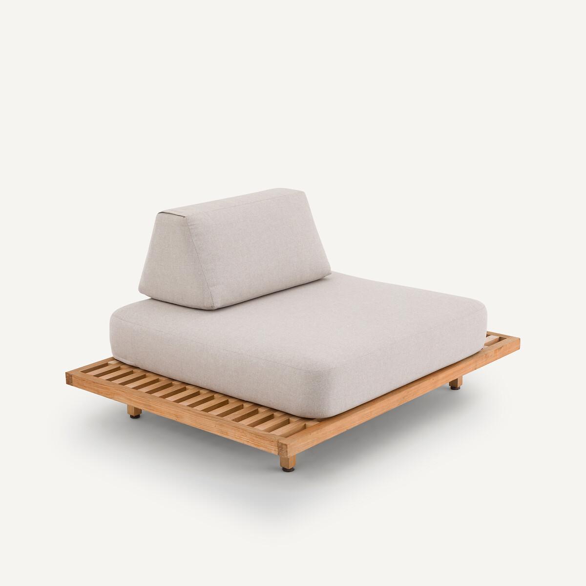 Die Sitzmöbel haben die gleiche Höhe wie der Loungetisch, was ein homogenes einladendes Ensemble ergibt. Das Design ist zeitlos: Beine und Querstreben mit quadratischem Querschnitt, elegante Linien, schöne Polster ... Die Möbel der Serie Joeco aus massivem Teakholz mit FSC®-Siegel haben alle Eigenschaften, die für eine Nutzung im Freien benötigt werden: Solidität, Anpassungsfähigkeit und geringer Pflegeaufwand. Eine Outdoor-Kollektion mit der Handschrift von AM.PMDas Sitzpolster kann auf dem Teakgestell verschoben werden, wodurch eine seitliche Ablagefläche nutzbar wird. Das Rückenpolster stützt den Rücken gut, kann aber auch als Armlehne dienen.