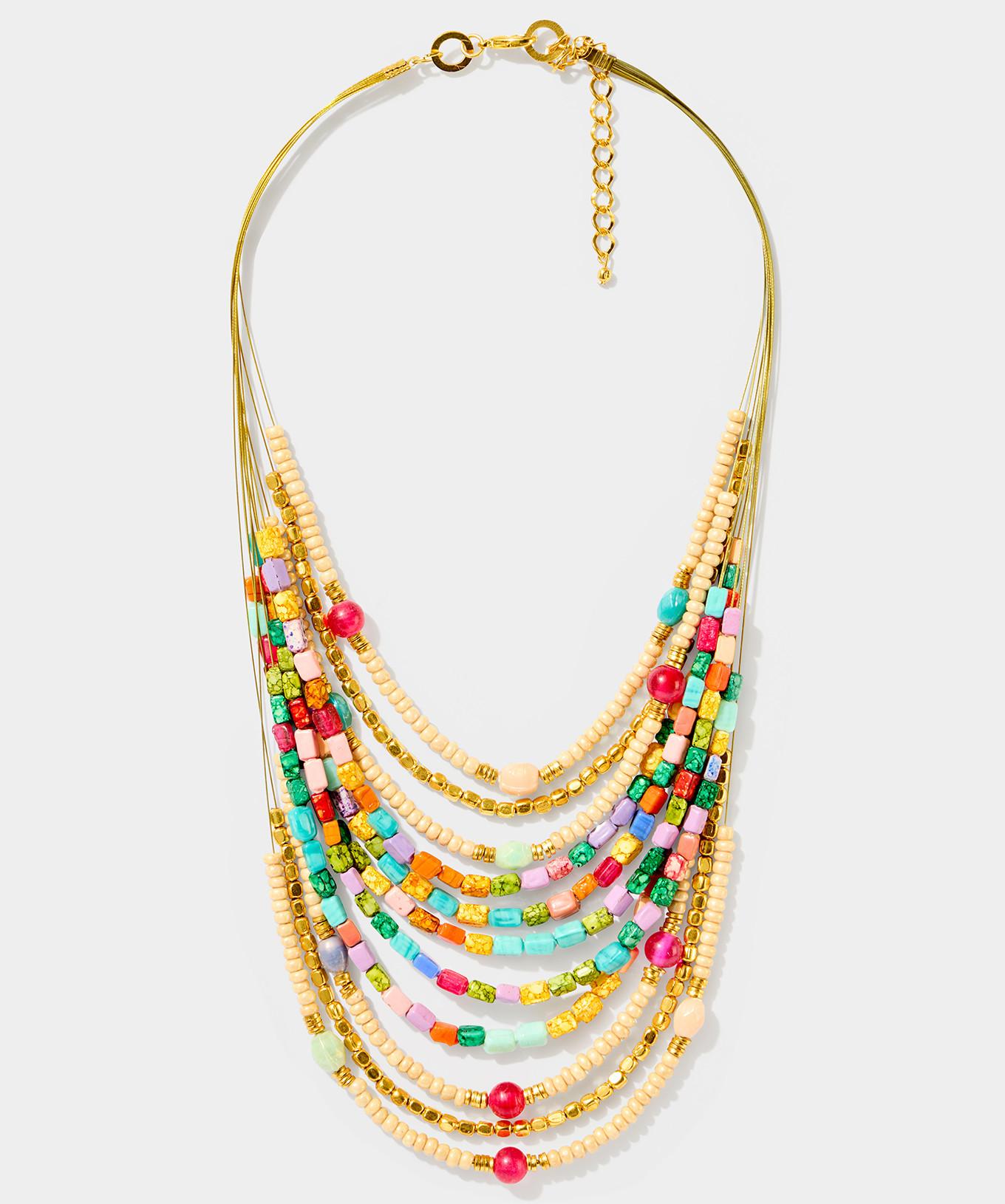 Diese mehrlagige Halskette mit ihren bunten Perlen sorgt für eine erfrischende, lässige Eleganz.