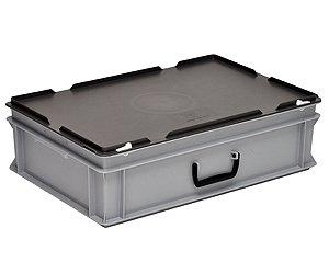 Produkttyp: Aufbewahrungsbox, Tiefe: 400 mm, Breite: 600 mm, Nutzinhalt Gesamt: 30 l, Detailfarbe: Grau, Höhe: 184 mmDeckel mit SchnappverschlüssenStapelbarAbmessungen: 600 x 400 x 184 mmTragegriff
