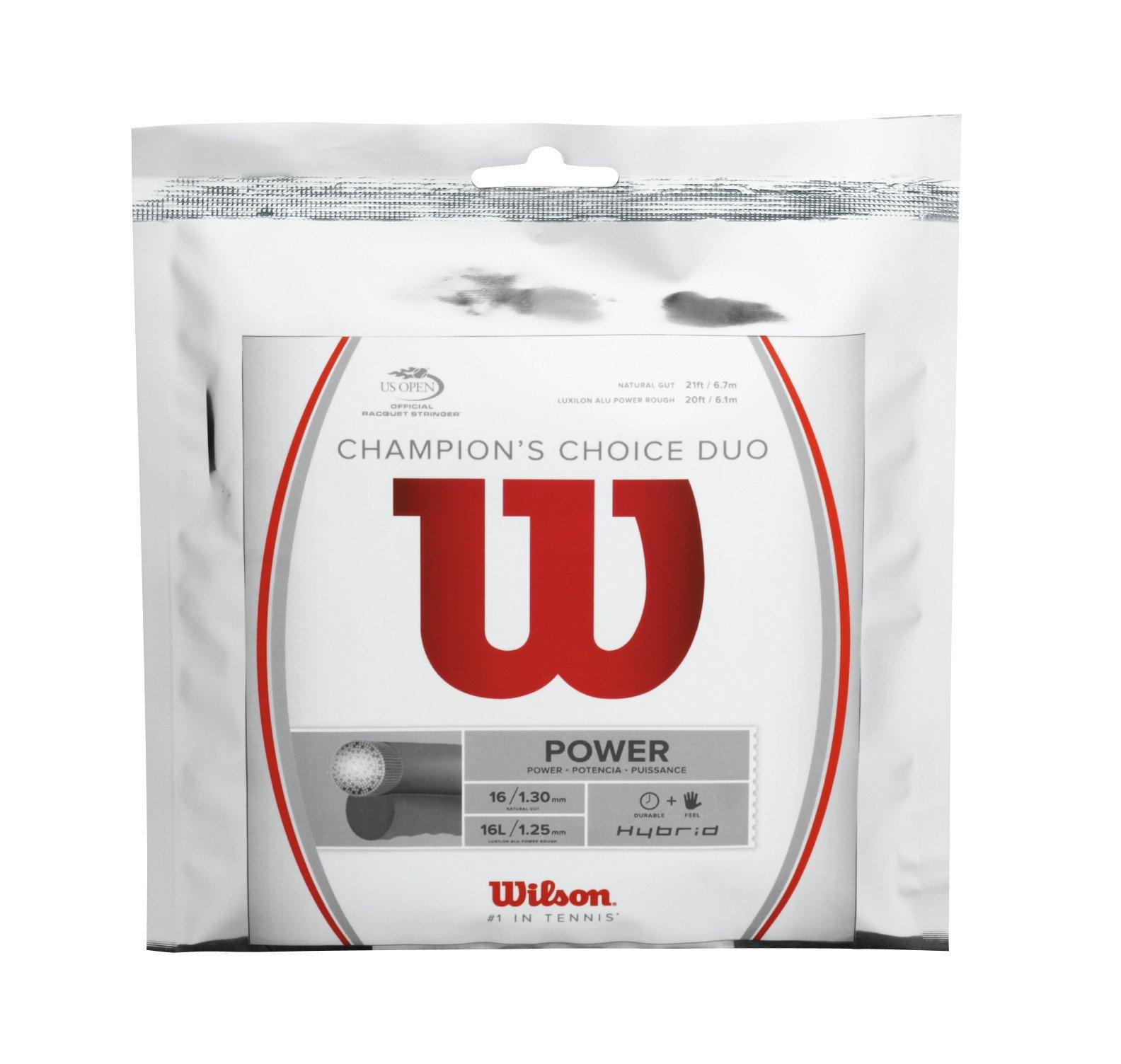 Champion's Choice Duo, die von Roger Federer bevorzugte Saite, kombiniert die Kraft und das Gefühl von Wilsons Naturdarmsaite mit der Langlebigkeit und dem Spin von Luxilons ALU Power Rough. Federer verwendet Naturdarm als Längs- und ALU Power Rough als Quersaiten für ein weicheres Gefühl und exzellente Spielbarkeit. Nutzen Sie ALU Power Rough als Längssaiten, wenn Sie eine höhere Lebensdauer wünschen.