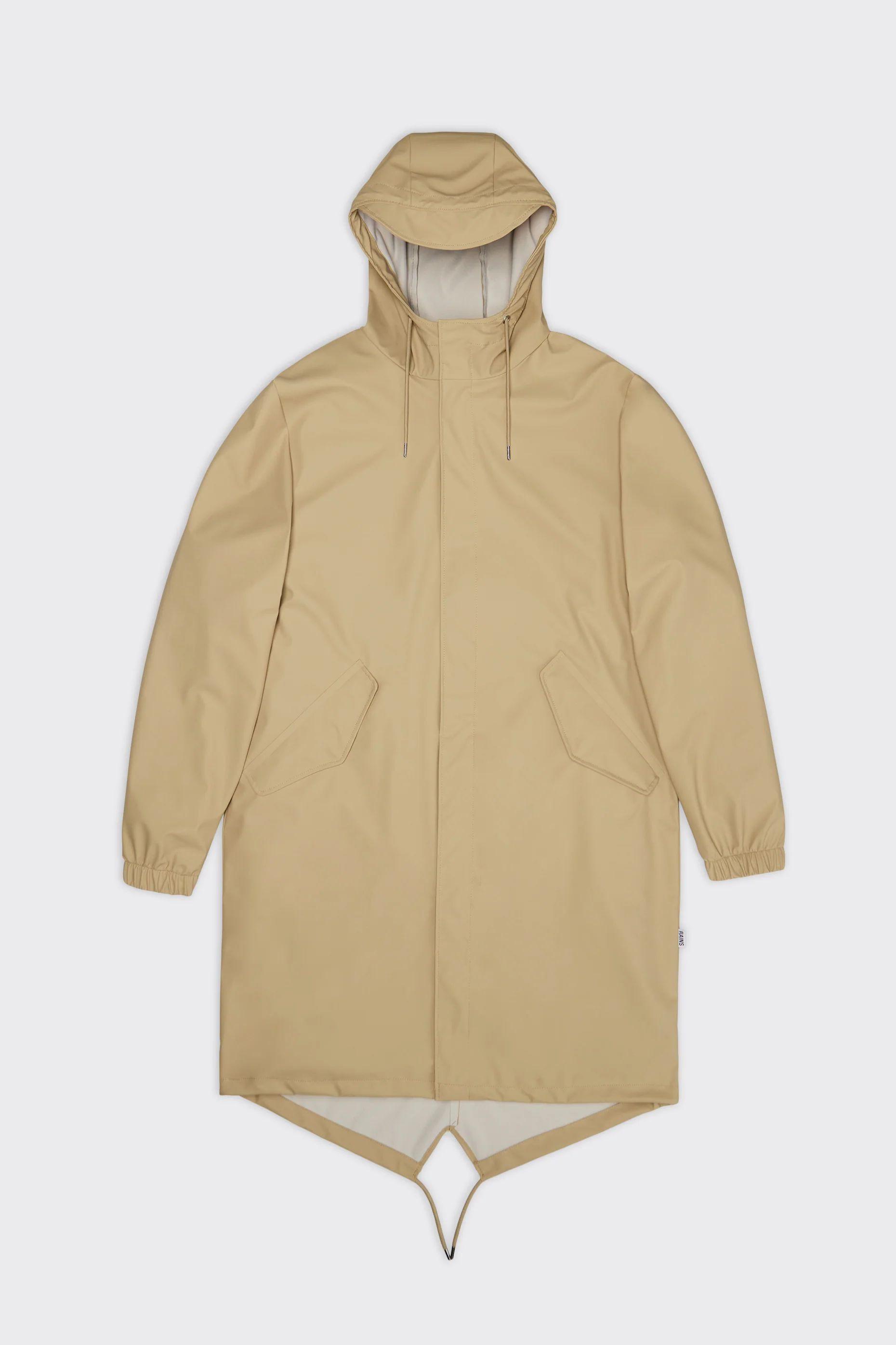 Der Fishtail Parka ist ein Unisex-Regenmantel, der sich durch seine schlichte Ästhetik und den Fischschwanzrücken mit Kordelzug auszeichnet. Das Design ist lässig und hat einen schrägen Saum. Der Reissverschluss wird durch eine schlichte Leiste mit Druckknöpfen verdeckt. Der Fishtail Parka hat Taschen, elastische Ärmelbündchen und eine Kapuze mit Kordelzug, wie sie für Rains typisch sind. Dieser wasserdichte Parka ist aus dem für Rains typischen PU-Gewebe gefertigt und mit ultraschallverschweissten Nähten versehen. Die leichte und ultra-weiche Verarbeitung hat eine elegante Drapierung.