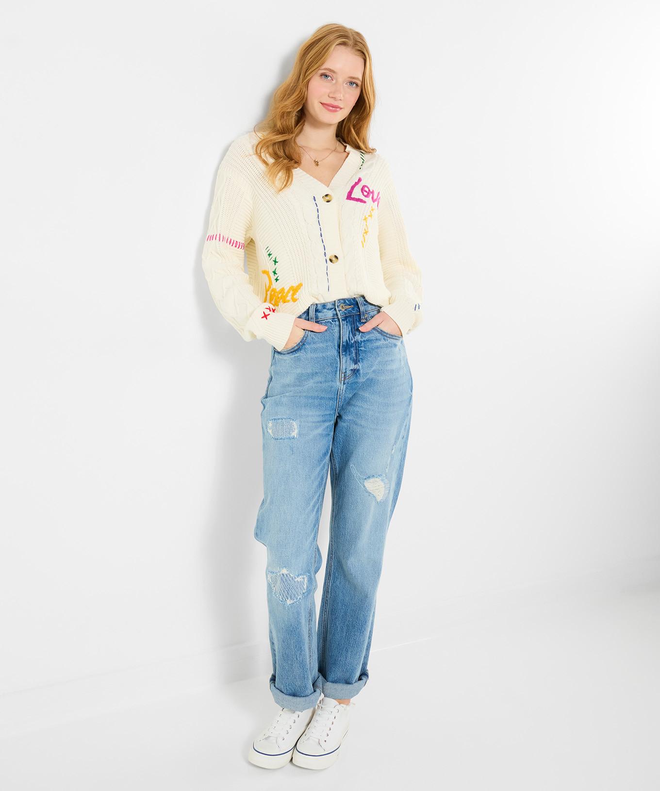 Joe Browns Oversize Strickjacke mit Stickerei und Zopfmuster