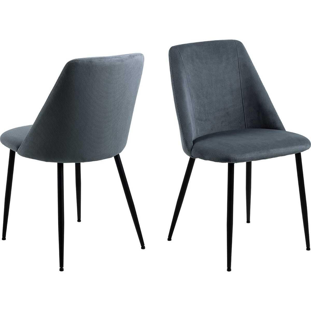 Charakteristisch gebogene Rückenlehne, 48,5 cm hoch Hochwertiger grauer Cordstoffbezug Rau pulverbeschichtete Stahlbeine in mattem Schwarz Feuerfeste Materialien für erhöhte Sicherheit Praktische Plastik Fusskappen zum Bodenschutz Maximale Belastbarkeit von 110 kg Ein Produkt von Loyd, bekannt für Qualität und Design