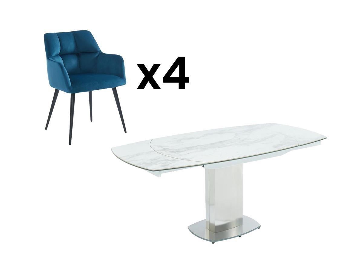 Diese Essgruppe bestehend aus dem ausziehbaren Esstisch TALICIA und den 4 Stühlen PEGA fügen sich problemlos in verschiedene Einrichtungsstile ein. Sie wird in Ihrem Esszimmer großartig aussehen, da sie aus hochwertigen Materialien wie Samt oder Keramik mit Marmoreffekt hergestellt ist.