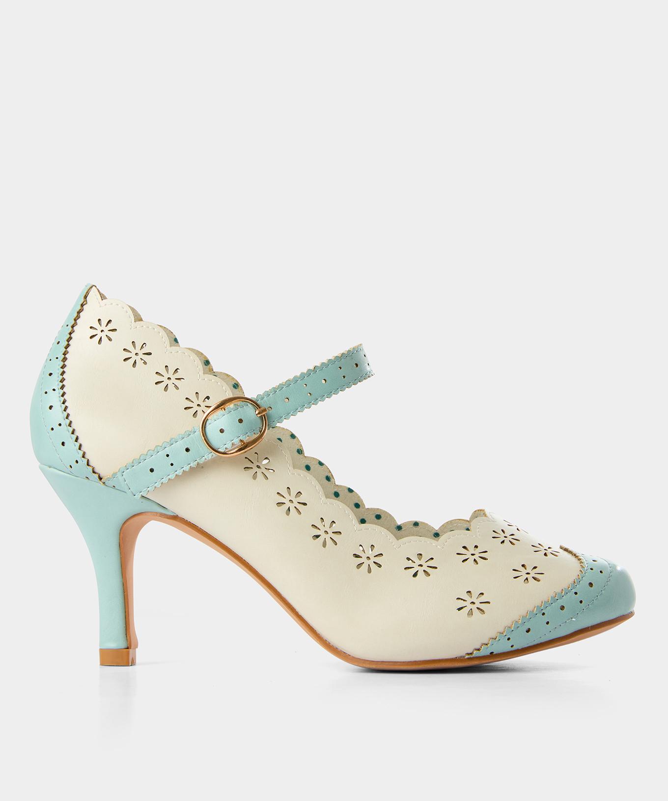 Diese eleganten Riemchenschuhe mit floralem Durchbruchmuster sorgen für einen sommerlichen Look von Kopf bis Fuß.