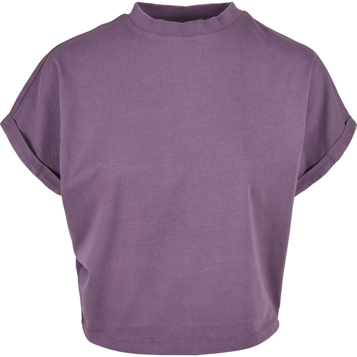Dieses bequeme und lässige Damen-T-Shirt besticht durch seinen raffinierten Schnitt und das trendige Material. Es ist absichtlich kurz geschnitten und endet knapp über der Hüfte. Die schrägen Ärmel haben kleine Manschetten. Der Rundhalsausschnitt schliesst etwas höher ab als bei der klassischen Version. Dieses trendige Damen-T-Shirt ist aus hautfreundlicher Baumwolle gefertigt, die einer speziellen Färbetechnik unterzogen wurde – das gelungene Ergebnis spricht für sich.