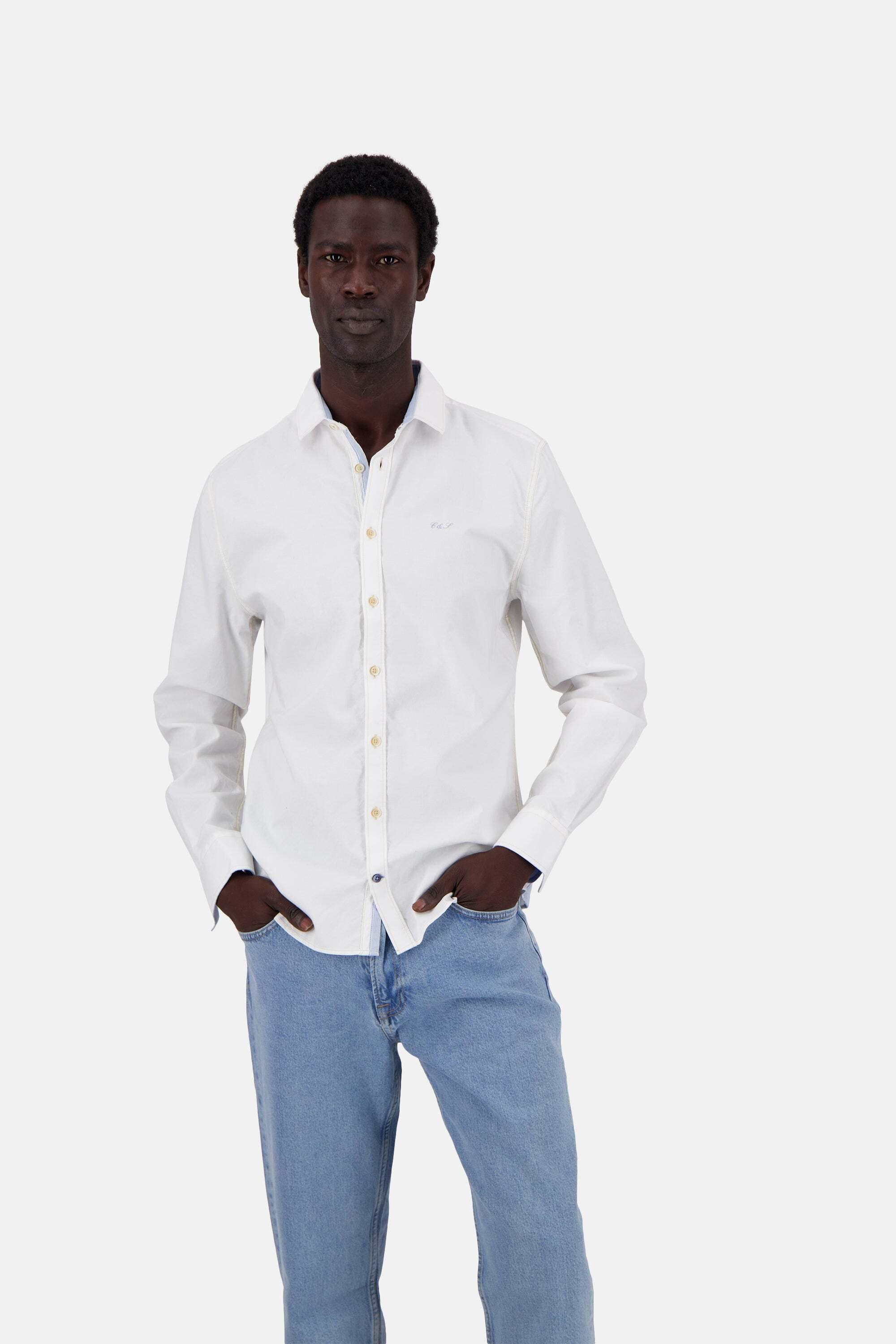 Das Shirt-Soft Oxford vereint klassische Eleganz mit modernen Details und hochwertiger Verarbeitung. Gefertigt aus Baumwolle in einer weichen Oxford-Qualität, bietet es höchsten Tragekomfort und eine edle Optik. Dieses Hemd ist zudem Made in Europe, was für besondere Sorgfalt und Qualität in der Herstellung steht. Zu den durchdachten Details gehören ein Kontrastband, die C&S-Stickerei auf der Brust sowie ein einzigartiger Sandwich-Knopf am rechten Manschettenabschluss, der dem Design eine subtile Raffinesse verleiht. Auf der Rückseite des Hemdes findet sich die dezente &-Stickerei, die das Gesamtbild stilvoll abrundet. Dieses vielseitige Oxford-Hemd ist der ideale Begleiter für Büro, Freizeit oder besondere Anlässe, bei denen ein smartes und gepflegtes Erscheinungsbild gefragt ist.