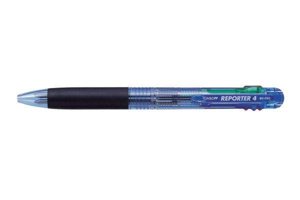 REPORTER 4 - 4-Farben Kugelschreiber Dieser edle Kugelschreiber von TOMBOW bietet einen maximalen Schreibkomfort. Aufgrund unterschiedlicher Druckknöpfe kann die Farbe durch das Tasten gewählt werden: rot, blau, grün, schwarz Mit federngelagertem Klipp