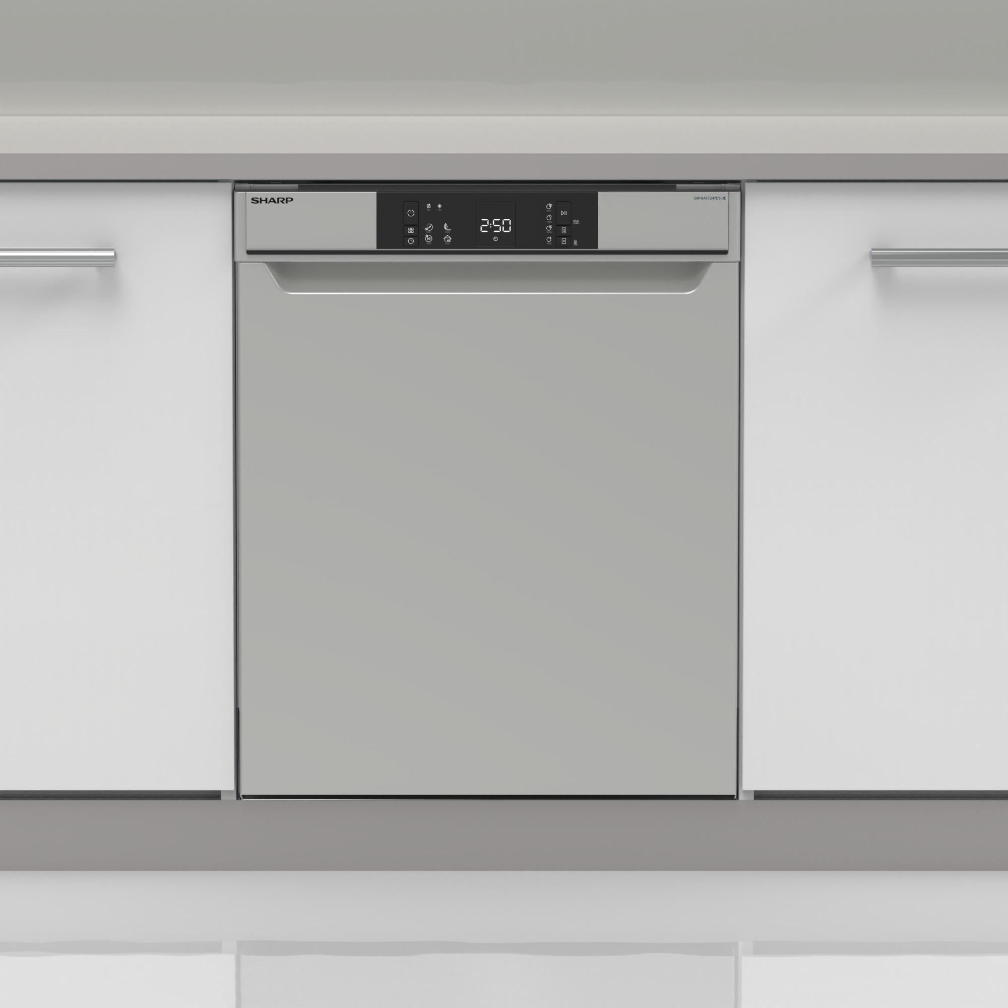 Der teilintegrierte Unterbau-Geschirrspüler QW-NA1CU47DS-DE 60 cm von Sharp bietet eine leistungsstarke und effiziente Lösung für die Geschirrreinigung in Ihrer Küche. Mit großzügigem Platzangebot, schnellen Waschzyklen und zuverlässigen Sicherheitsfunktionen macht er das Geschirrspülen zu einer mühelosen Aufgabe.Energieeffizienzklasse D (A bis G)13 Maßgedecke - ausreichend Platz für GeschirrGeräuschniveau 47 dB(A) - leise im BetriebQuickWash 30' - schnelle Reinigung in 30 MinutenAquaStop - Schutz vor WasserschädenDunkles Silber - modernes Design für jede KücheUnterbaufähig für Nischenhöhe 820 870 mmDer teilintegrierte Unterbau-Geschirrspüler QW-NA1CU47DS-DE 60 cm von Sharp ist die perfekte Ergänzung für Ihre Küche und bietet eine leistungsstarke Reinigungslösung für Ihr Geschirr. Mit einer Kapazität von 13 Maßgedecken bietet er ausreichend Platz für das Geschirr einer ganzen Mahlzeit.Trotz seiner beeindruckenden Leistung arbeitet der Geschirrspüler äußerst leise mit einem Geräuschniveau von nur 47 dB(A), sodass er Sie nicht beim Kochen oder Entspannen stört.Die QuickWash 30'-Funktion ermöglicht es Ihnen, Ihr Geschirr in nur 30 Minuten blitzsauber zu bekommen, was ideal ist, wenn Sie es eilig haben oder schnell eine kleine Menge Geschirr reinigen möchten.Mit dem integrierten AquaStop-System bietet Ihnen dieser Geschirrspüler zusätzliche Sicherheit vor Wasserschäden, indem er den Wasserzulauf bei einem Leck automatisch stoppt.Das moderne Design in dunklem Silber verleiht Ihrer Küche eine stilvolle Note und passt zu verschiedenen Einrichtungsstilen. Darüber hinaus ist dieser Geschirrspüler unterbaufähig für Nischenhöhen von 820 bis 870 mm und lässt sich nahtlos in Ihre Küchenumgebung integrieren.Ein Unterbau-Geschirrspüler muss unter der Arbeitsplatte der Küchenzeile integriert werden, er hat keine Abdeckung und die Oberseite ist nicht belastbar. Bei einem Unterbaugerät bleibt die Gerätefront nach der Integration weiterhin sichtbar. Es besteht keine Möglichkeit die Gerätefront optisch an die Küche anzupassen.