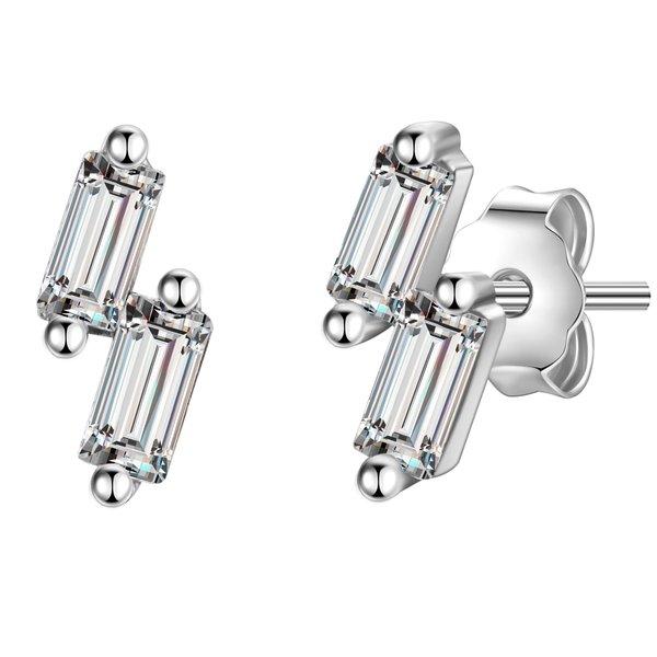 Ein Accessoire mit Stil: Diese bezaubernden Ohrstecker des Labels Glanzstücke München lassen die Augen aller modebewussten Fashionistas strahlen, die minimalistische Optik mit einem Hauch Glamour verbinden möchten. Der schlichte Stecker trägt zwei barrenförmig geschliffene Zirkoniakristalle, die ein atemberaubendes Funkeln an dein Ohrläppchen zaubern - ein Schmuckstück, das zur lässigen Jeans ebenso passt wie zum seriösen Business-Outfit. Das 925er Sterlingsilber des Steckers und der Krappenfassungen ist durch eine hochwertige Rhodinierung vor dem Anlaufen geschützt, so dass die Ohrstecker lange ihren strahlenden Silberglanz bewahren.