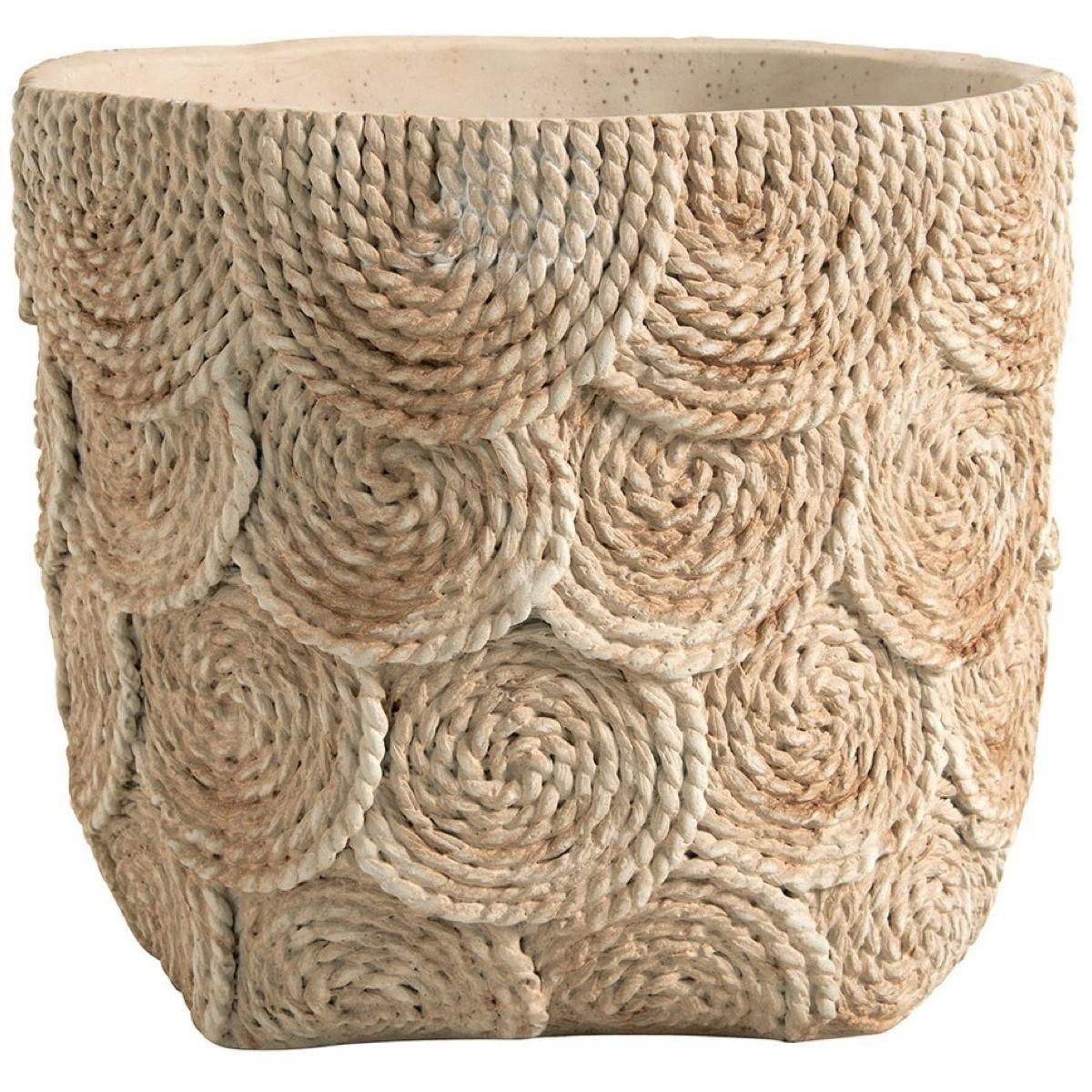 Der Übertopf Osa vereint Tradition und Moderne durch einen speziellen Überformungsprozess mit Weidengeflecht, der ihm eine einzigartige, strukturierte Optik verleiht. Hergestellt aus Zement mit einer sanften cremefarbenen Oberfläche, fängt dieser Übertopf die natürliche Essenz von Weidengeflecht ein und bietet gleichzeitig die Robustheit und Eleganz von Zement. Sein schlichtes Design und seine organischen Linien machen ihn zu einem vielseitigen Accessoire, ideal, um Ihre Zimmerpflanzen hervorzuheben und Ihrer Einrichtung eine handwerkliche Note zu verleihen.