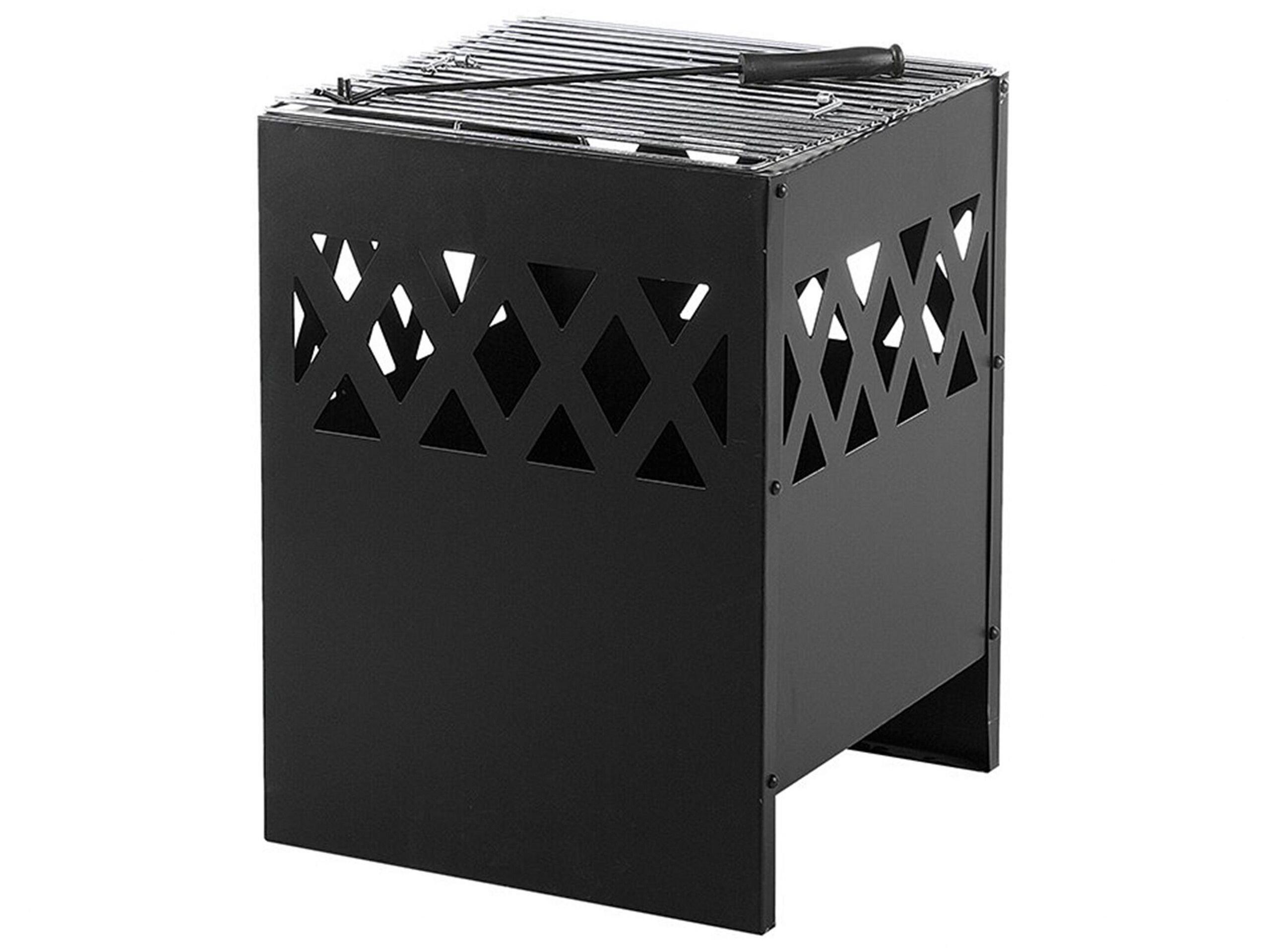 Stabile Feuerstelle aus Stahl mit verchromten Grillrost. Geniessen Sie mit dieser kompakten, kastenförmigen Feuerstelle eine warme Atmosphäre und köstliche Grillgerichte. Sie ist eine multifunktionale und platzsparende Lösung für kleinere Aussenbereiche. Sie ist aus robustem Stahl gefertigt, hält hohen Temperaturen stand und ermöglicht eine jahrelange problemlose Nutzung – egal, ob Sie eine gemütliche Feuerstelle oder einen Ort für ein zwangloses Essen suchen. Die Feuerstelle lässt sich leicht mit Holz oder Holzkohle befüllen und verfügt über einen verchromten Grillrost, der das Kochen im Freien ermöglicht. Sie ist somit ideal für alle, die gerne Fleisch oder Gemüse braten oder einfach nur geröstete Marshmallows probieren möchten. Sie vereint dekorative Optik mit Alltagstauglichkeit und eignet sich perfekt für Terrassen und Veranden. An kühleren Abenden sorgt sie zuverlässig für Wärme und garantiert eine schöne Zeit im Freien mit Ihren Freunden und der Familie.