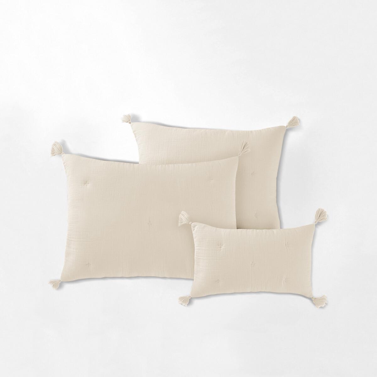 Der Kissenbezug Kumla verleiht jedem Schlafzimmer einen Hauch von Eleganz und Komfort. Seine strukturierte Oberfläche und die dekorativen Quasten schaffen eine raffinierte und dennoch gemütliche Ästhetik, die jedes Bettwäsche-Ensemble perfekt ergänzt.