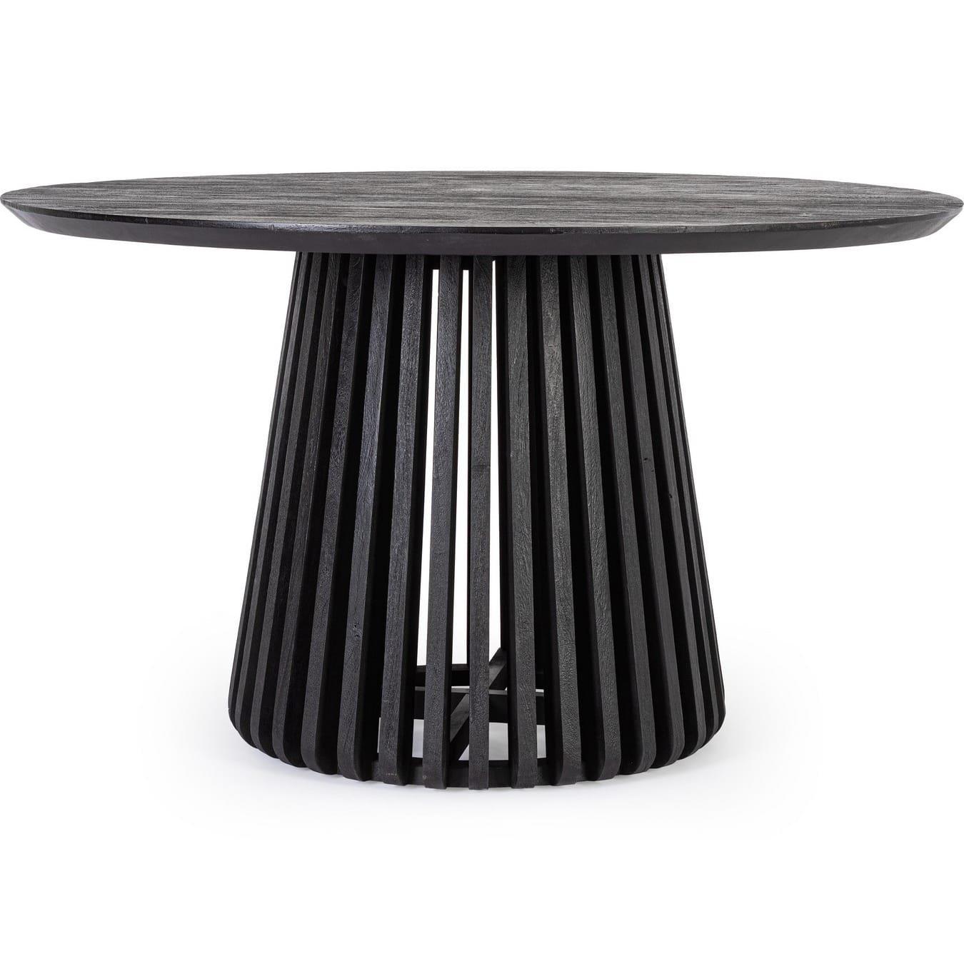 Tisch aus Mangoholz, Farbe Schwarz, Ø130 x 75hGestell aus MangoholzFeinbearbeitung aus NitrozelluloseBeine zu montieren