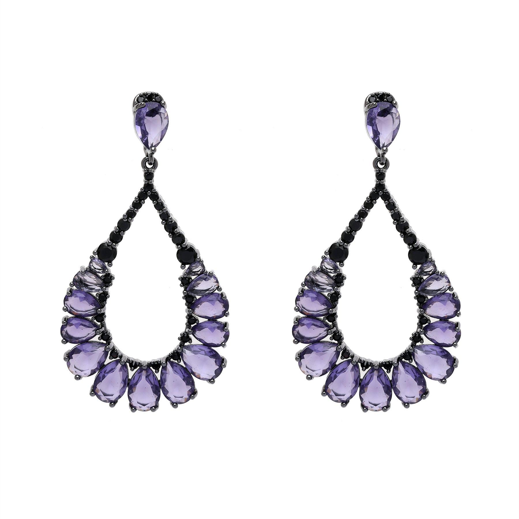 Diese eleganten, dunkelvioletten Ohrringe bestechen durch ihr tropfenförmiges Design, das mit atemberaubenden Edelsteinen im Marquiseschliff besetzt ist. Die schwarze Metallfassung unterstreicht den tiefen Violettton und erzeugt einen markanten und zugleich raffinierten Kontrast. Die kunstvolle Anordnung der Steine verleiht den Ohrringen einen luxuriösen Touch und macht sie zur perfekten Wahl für Abendveranstaltungen oder besondere Anlässe. Größe: 2,5 cm x 4,7 cm | Beschichtung: Rhodiumplattiert | Verschluss: Stecker und Rückseite