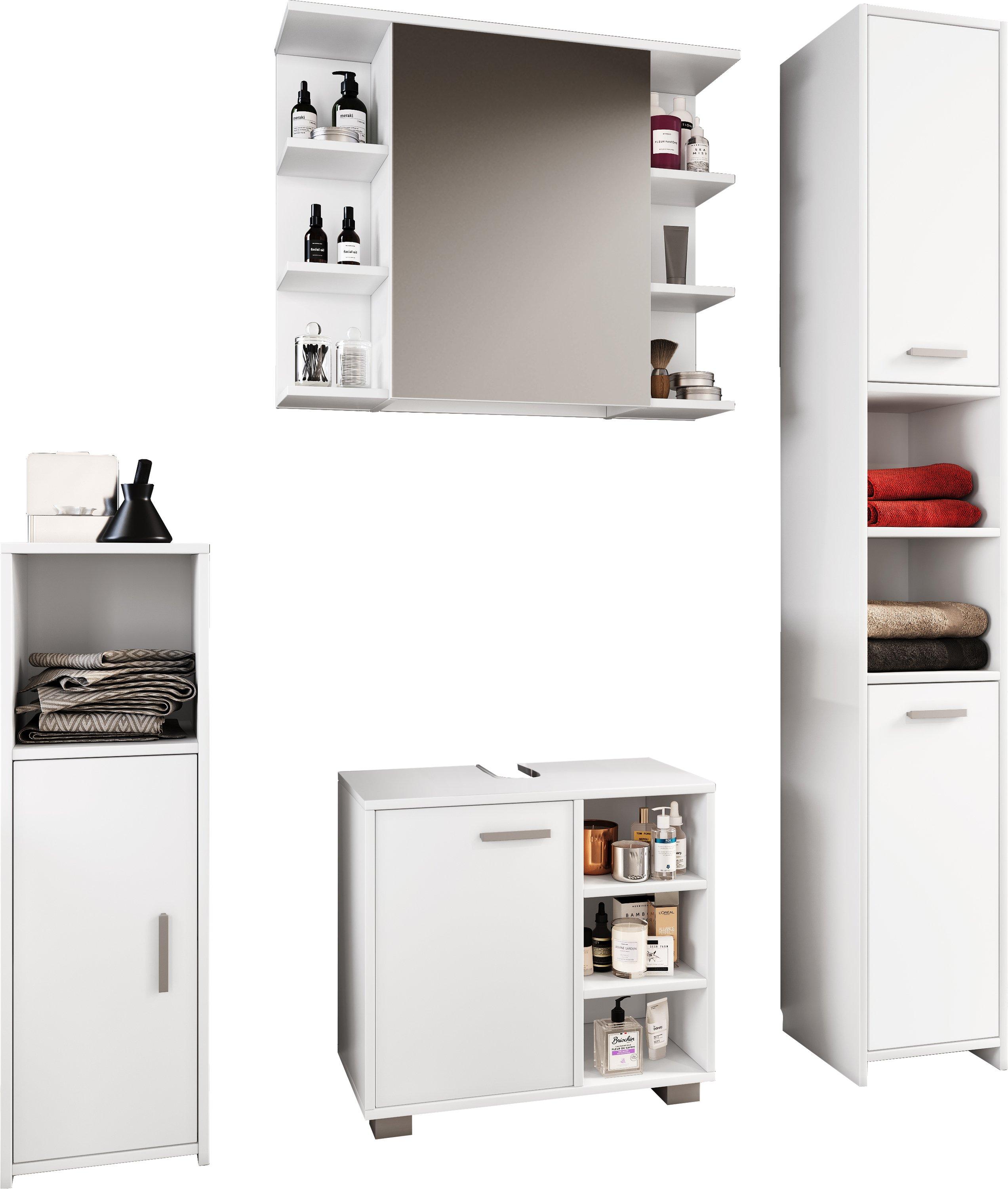 VCM, 4-tlg. Komplett Badmöbel Badschrank Bad Unterschrank Hochschrank Set Zalo I