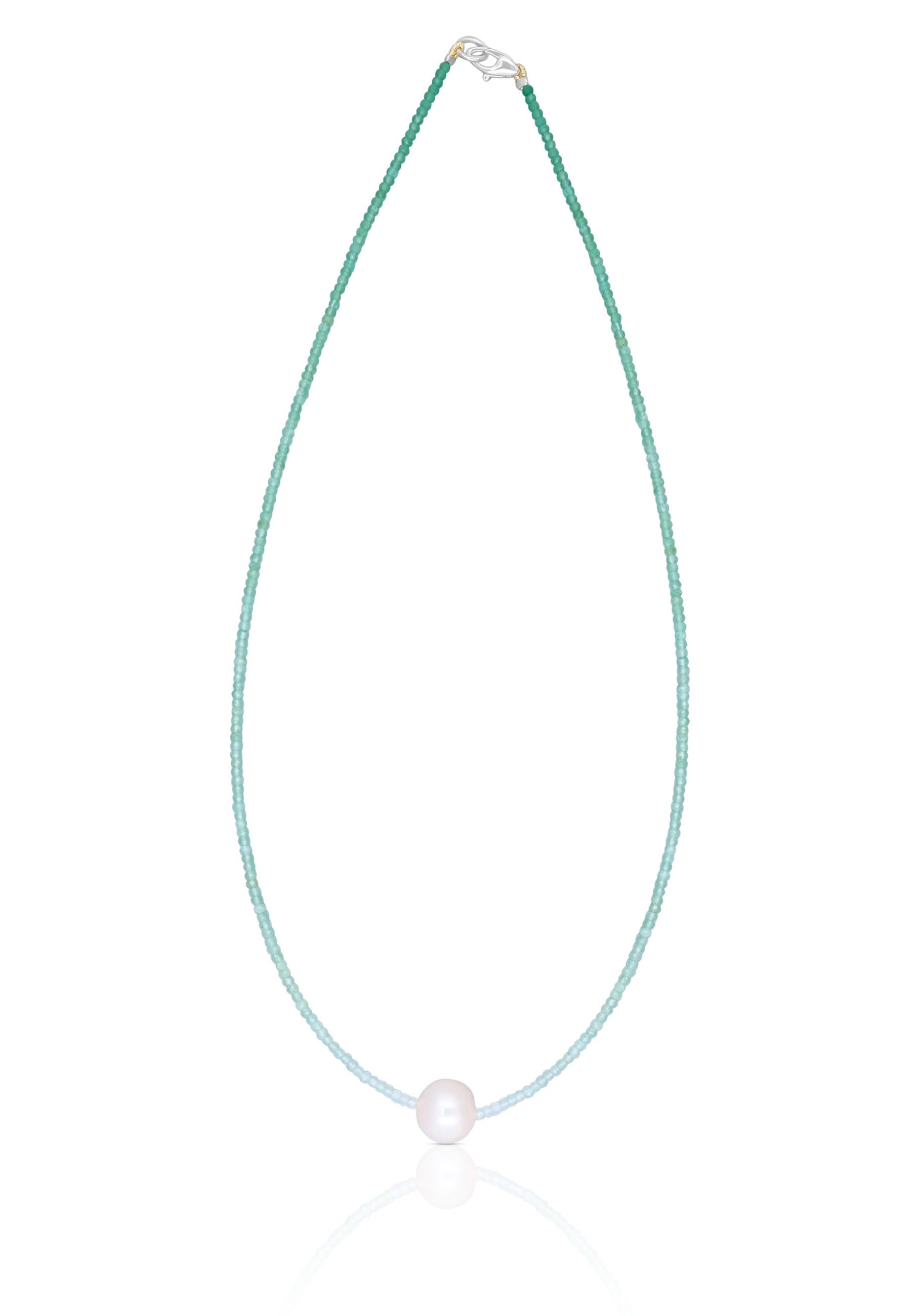 Collier Weissgold 750 Süsswasserperle 10-11mm Chalcedon