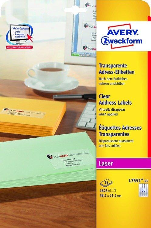 Avery-Zweckform, AVERY ZWECKFORM Adress-Etik. Laser 38x21,2mm, 1625 St.