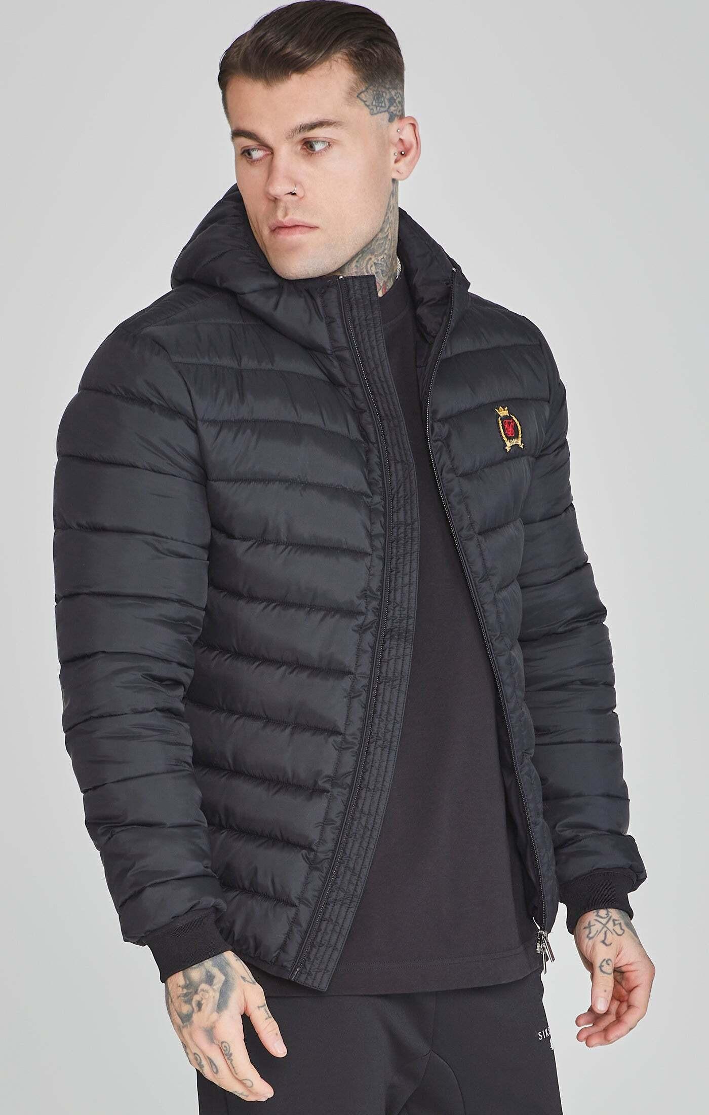 Die Bubble Jacket in Schwarz bietet eine stilvolle und praktische Lösung für kühle Tage. Diese leichte Steppjacke verfügt über einen Zwei-Wege-Reissverschluss und ein SikSilk Wappenlogo auf der Brust. Rippstrickbündchen und eine Kapuze sorgen für zusätzlichen Komfort und Schutz.