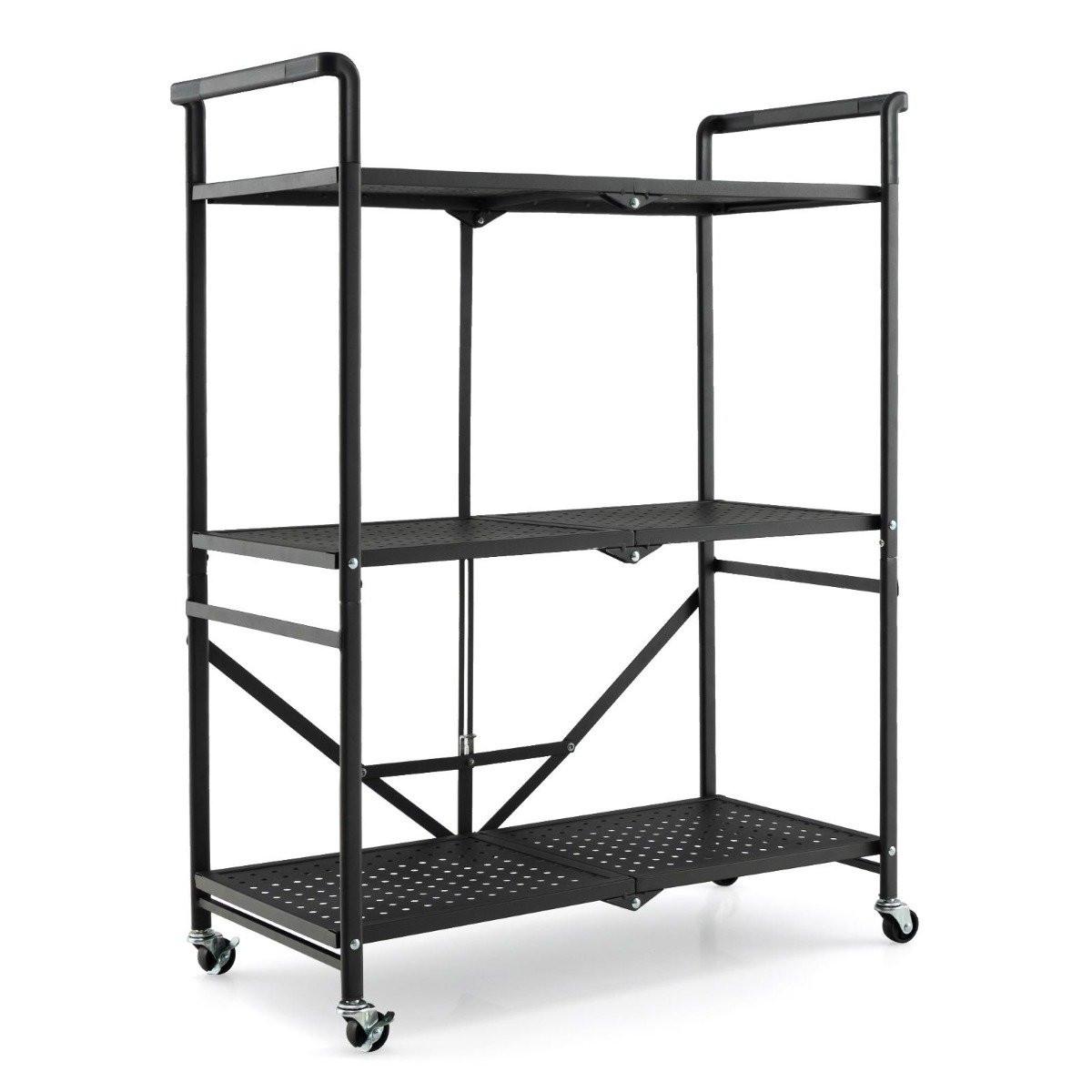 B2X, Klappbare Servierwagen mit 4 Rollen 3 Etagen Metallregal für Küche Büro