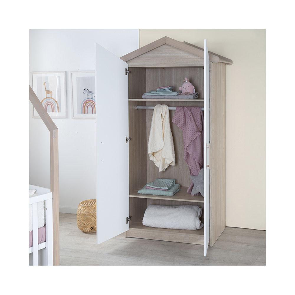 Anzahl Ablagefächer: 2, Anzahl Kleiderstangen: 1, Anzahl Türen: 2, Farbe: Weiss / Holz, Funktionell veränderbar: Nein, Garantie (Monate): 24, Holzart: Eichendekor, Material Türgriff: Echtholz Masse: 190 x 96 x 50 cm (HxBxT)