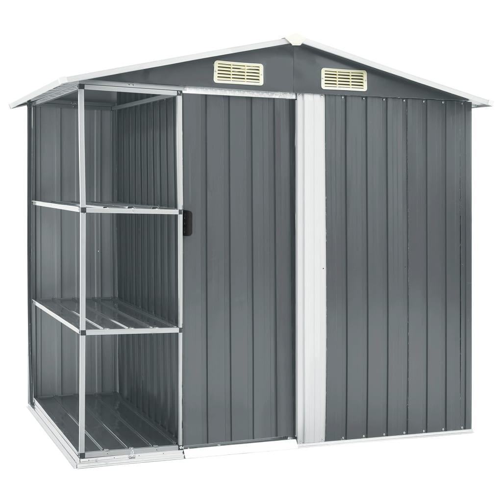 Dieses Gartenhaus besteht aus verzinktem Eisen und ist daher stabil und pflegeleicht. Der Gartenschuppen hat vorne und hinten Lüftungsschlitze, die für eine hervorragende Belüftung sorgen. Die einzelne Schiebetür mit Kunststoff-Türgriff vorne ermöglicht einen einfachen Ein- und Ausstieg.